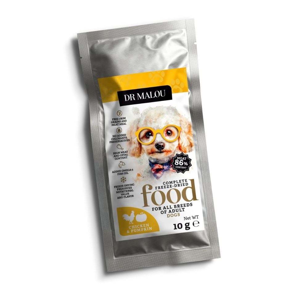 DR MALOU Liofiliseeritud toit Kana kõrvitsaga 10 g kuiv toit koertele GTIN: 5907346090663 Koertele>Koeratoit ja maiused>Koerte kuivtoit | 1,40 € | Poodi | ||