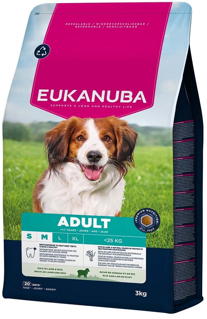 EUKANUBA Adult Small Medium Breeds Lamb Rice 3 kg kuivtoit väikeste ja keskmise suurusega koertele, mis on rikas lambaliha ja riisi poolest GTIN: 8710255201962 Koertele>Koeratoit ja maiused>Koerte kuivtoit | 13,35 € | Poodi | ||