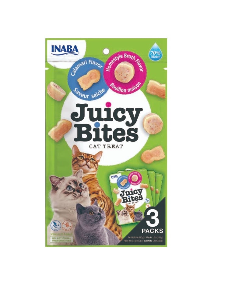 INABA Juicy Bites märjad maiuspalad koduse puljongiga ja kalmaariga kassidele 33,9 g (3x11,3 g) GTIN: 8859387701725 Kassidele>Kassitoit ja maiused>Kasside maiuspalad | 3,55 € | Poodi | ||