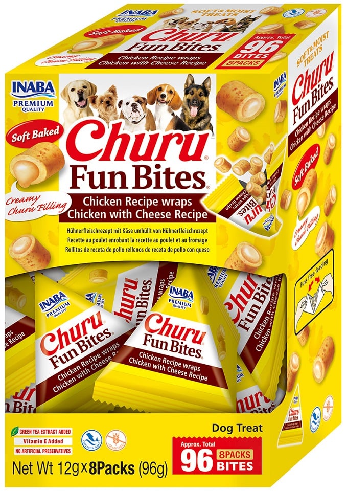 INABA Dog Churu Fun Bites Chicken with Cheese 8x12g kana-juustu wrap koerale GTIN: 4262365731784 Koertele>Koeratoit ja maiused>Koerte maiuspalad | 6,88 € | Poodi | ||