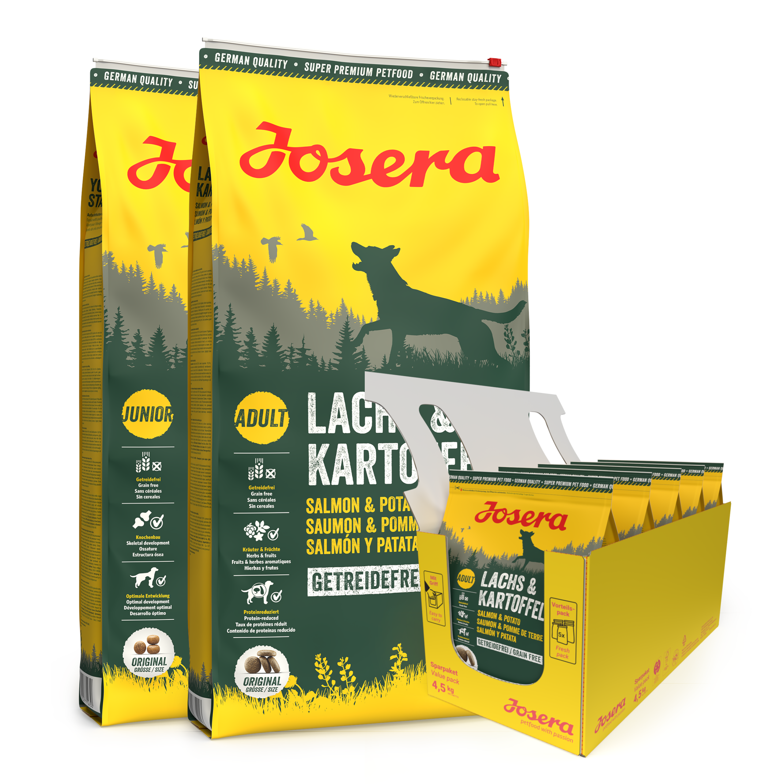 JOSERA Lachs&Kartoffel 2 x 12,5kg täiskasvanud koertele lõhe ja kartuliga + 5 x 900g GRATIS GTIN: 4032254775416 Koertele>Koeratoit ja maiused>Koerte kuivtoit | 161,35 € | Poodi | ||