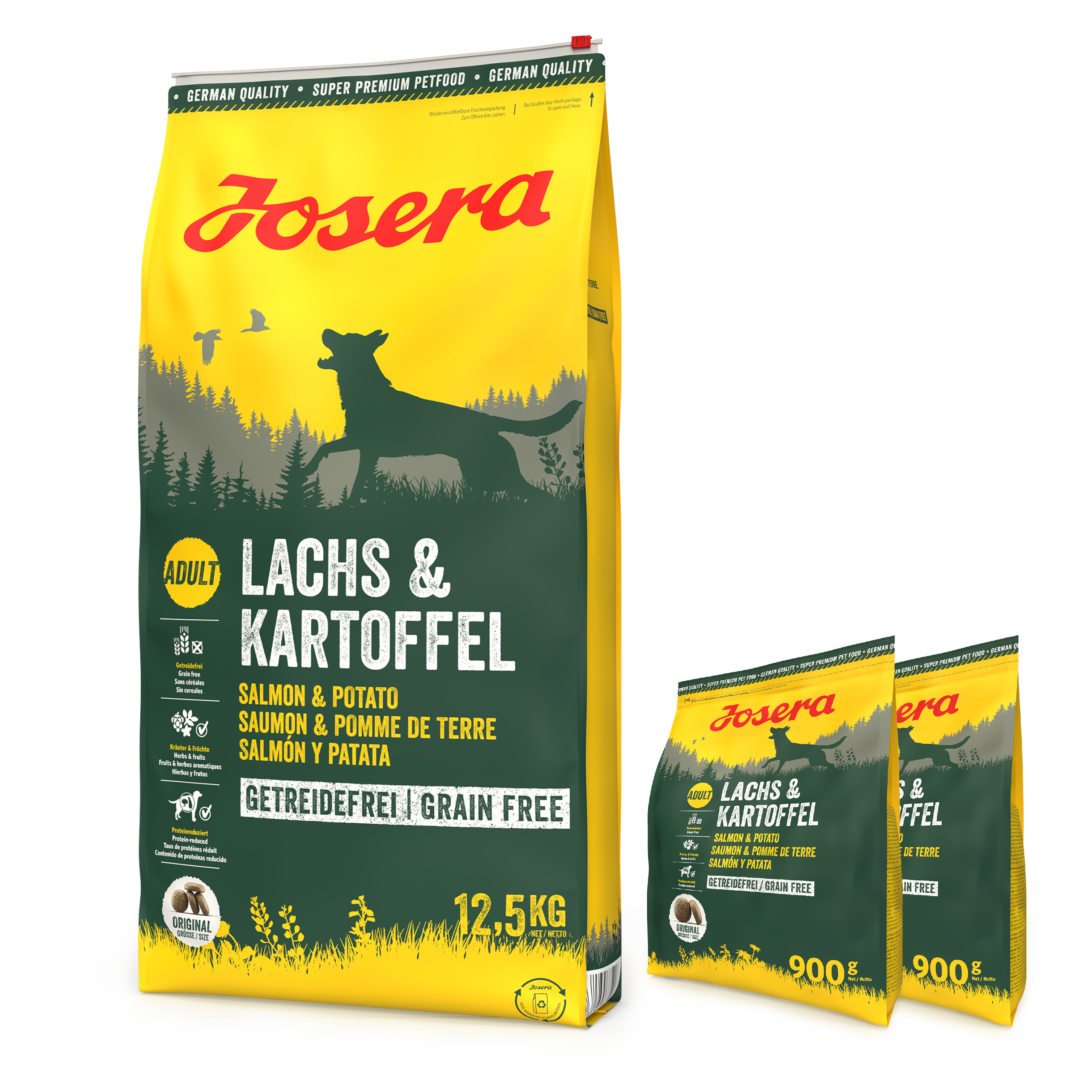 JOSERA Lachs&Kartoffel 12,5kg täiskasvanud koertele lõhe ja kartuliga + 900g TASUTA GTIN: 4032254775416 Koertele>Koeratoit ja maiused>Koerte kuivtoit | 65,74 € | Poodi | ||