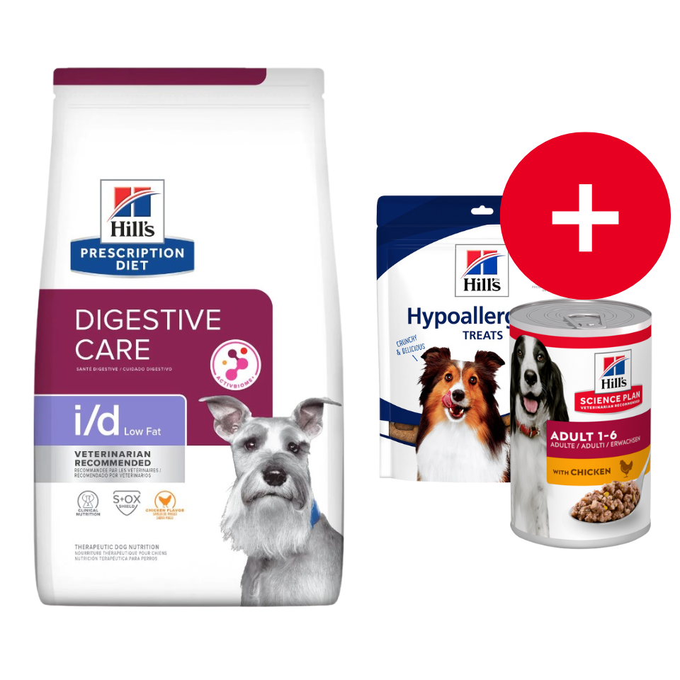 HILL'S Prescription Diet i/d Activ Biome Digestive Care Chicken Dog 12 kg koertele, kellel on tundlik seedetrakt + TASUTA maiustused