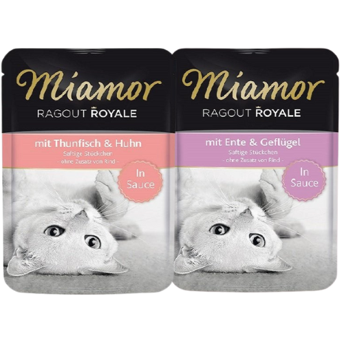 MIAMOR Ragout Royal tuunikala ja kana + part kanakastmega 24x100g Kassidele>Kassitoit ja maiused>Kasside märgtoit | 14,40 € | Poodi | ||