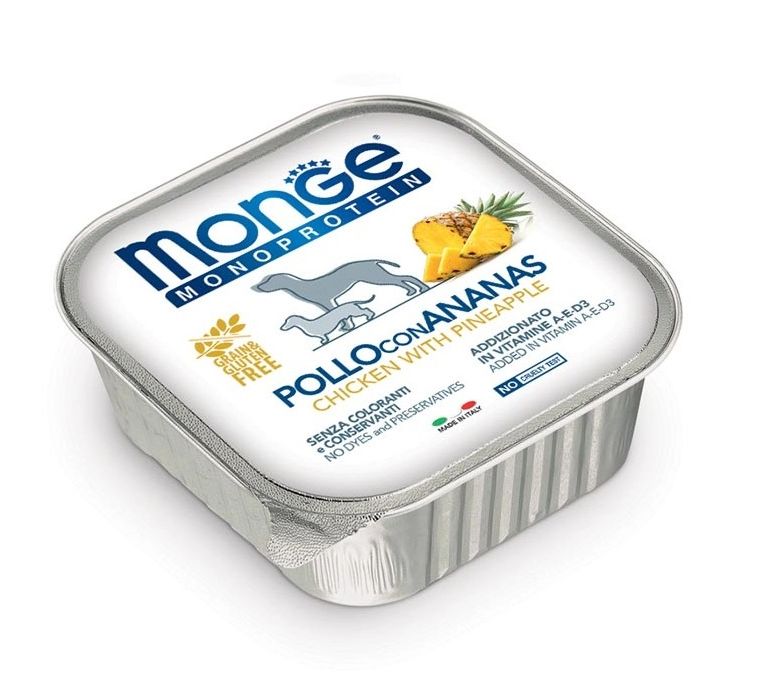 MONGE Fruit Dog Monoproteiin kana ananassiga 150g GTIN: 8009470014366 Koertele>Koeratoit ja maiused>Koerte märgtoit | 1,94 € | Poodi | ||
