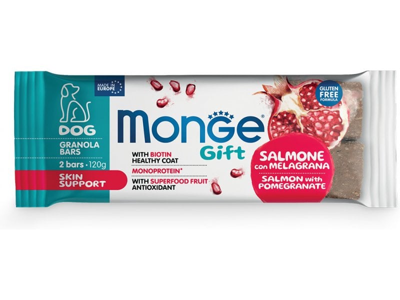 MONGE Gift Granola Bars Dog Adult lõhe granaatõunaga 120 g GTIN: 8009470085915 Tasuta | 25,00 € | Poodi | ||