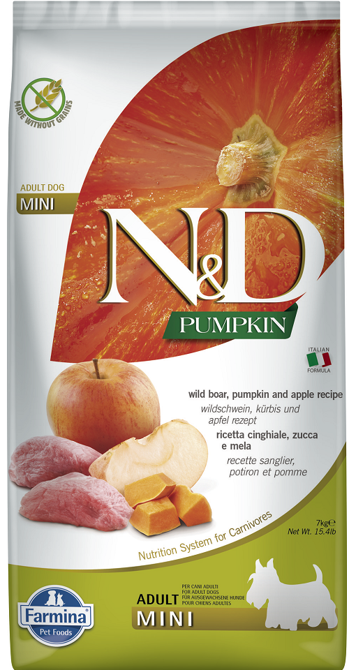 N&D GF Pumpkin Boar & Apple Adult Mini 7 kg GTIN: 8010276033659 Koertele>Koeratoit ja maiused>Koerte kuivtoit | 50,39 € | Poodi | ||