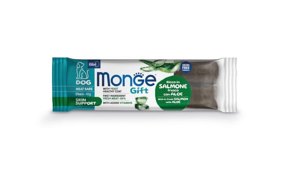 MONGE Dog Adult Meat bars Skin support Lõhe aloe veraga 2x40 g GTIN: 8009470085526 Tasuta | 25,00 € | Poodi | ||