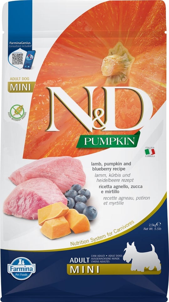 N&D GF Pumpkin Lamb & Blueberry Puppy Medium & Maxi 2.5 kg GTIN: 8010276033246 Koertele>Koeratoit ja maiused>Koerte kuivtoit | 29,44 € | Poodi | ||