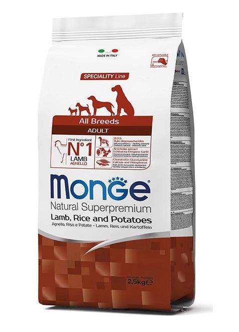 MONGE Koeratoit lambaliha riisi ja kartuliga 2,5 kg GTIN: 8009470011310 Koertele>Koeratoit ja maiused>Koerte kuivtoit | 16,46 € | Poodi | ||