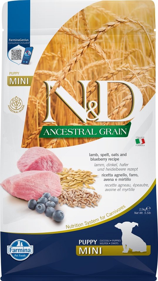 N&D Low Grain Dog Lamb & Blueberry Puppy Mini 2.5 kg GTIN: 8010276033703 Koertele>Koeratoit ja maiused>Koerte kuivtoit | 26,32 € | Poodi | ||