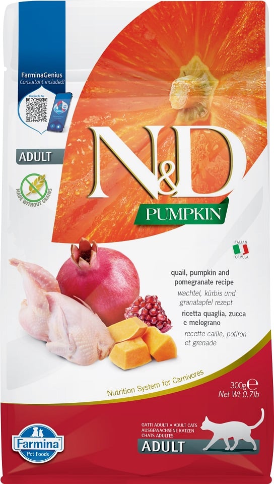 N&D Cat Pumpkin Quail & Pomegranate 300 g GTIN: 8010276035332 Kassidele>Kassitoit ja maiused>Kasside kuivtoit | 7,99 € | Poodi | ||