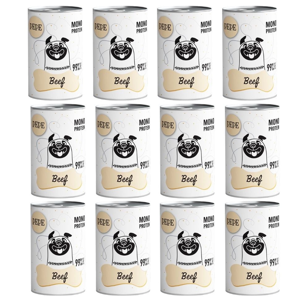PAKA ZWIERZAKA PEPE Beef 99% (veiseliha) 12x400 g GTIN: 5904806564290 Koertele>Koeratoit ja maiused>Koerte märgtoit | 40,80 € | Poodi | ||