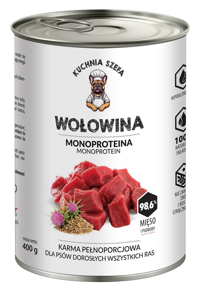 KUCHNIA SZEFA Veiseliha Monoproteiinne toit koertele kõigile tõugudele 400 g GTIN: 5901783960039 Koertele>Koeratoit ja maiused>Koerte märgtoit | 3,48 € | Poodi | ||