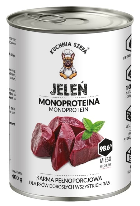 KUCHNIA SZEFA Monoproteina Hirv 400g märgtoit koertele GTIN: 5901783960497 Koertele>Koeratoit ja maiused>Koerte märgtoit | 3,98 € | Poodi | ||