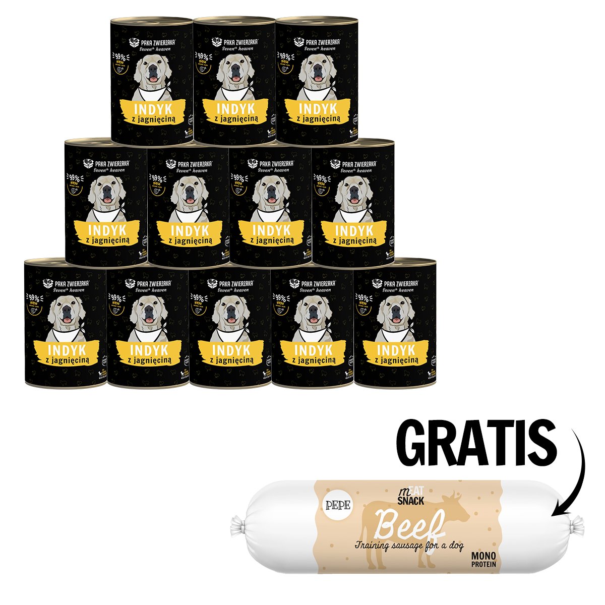 PAKA ZWIERZAKA Seventh Heaven Kalkun ja lambaliha (kalkun ja lambaliha) 12 x 400g + veiselihavorst koertele 200g TASUTA GTIN: 5904806564221 Koertele>Koeratoit ja maiused>Koerte märgtoit | 42,03 € | Poodi | ||