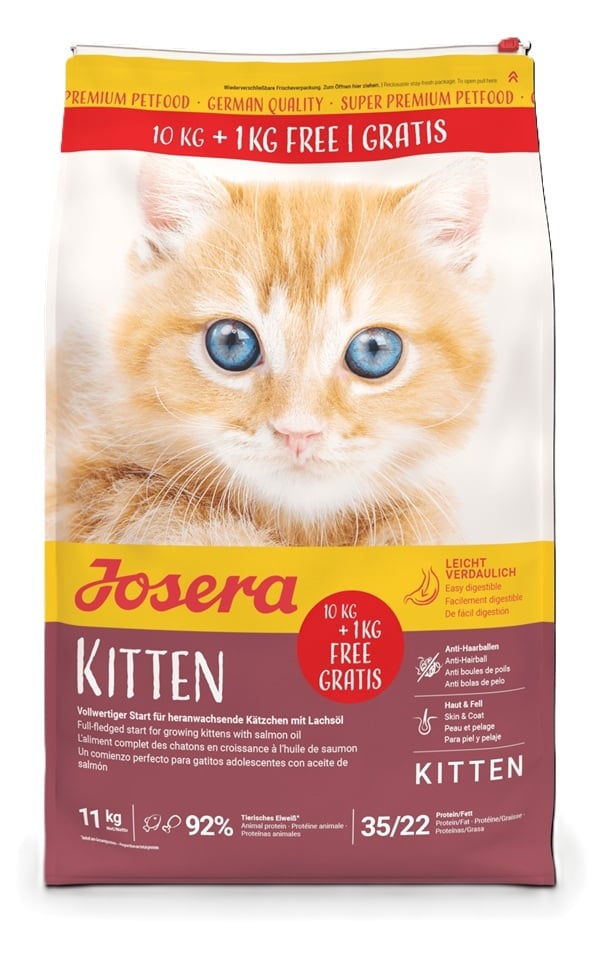 JOSERA Kitten kuivtoit kassipoegadele ja tiinetele või imetavatele kassidele 10 kg + 1kg tasuta GTIN: 4032254795971 Kassidele>Kassitoit ja maiused>Kasside kuivtoit | 58,35 € | Poodi | ||