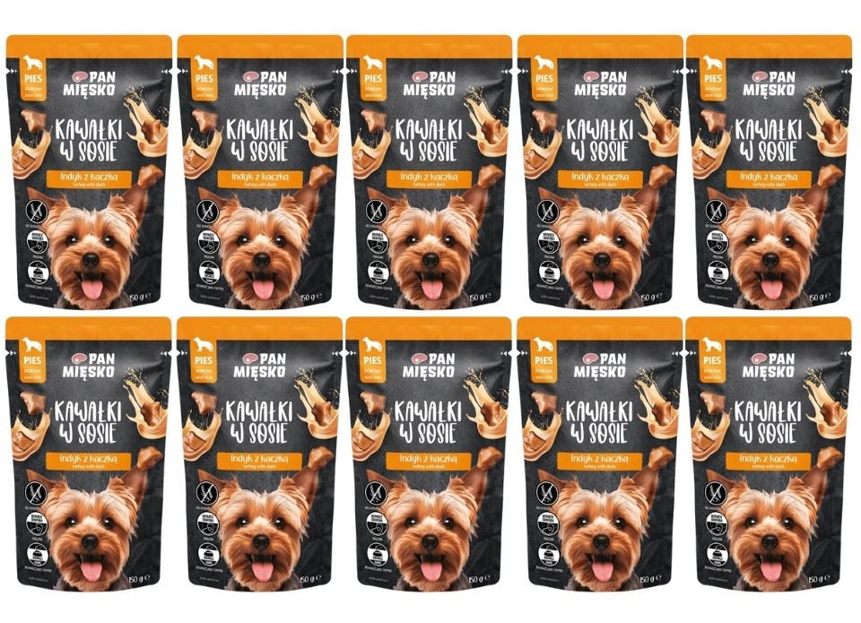 PAN MIĘSKO Tükid kastmes Kalkun ja part märg koeratoit 10x150 g GTIN: 5905342296270 Koertele>Koeratoit ja maiused>Koerte märgtoit | 12,30 € | Poodi | ||
