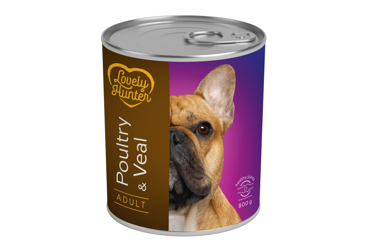 LOVELY HUNTER konservsööt täiskasvanud koertele linnu- ja vasikalihaga 800 g