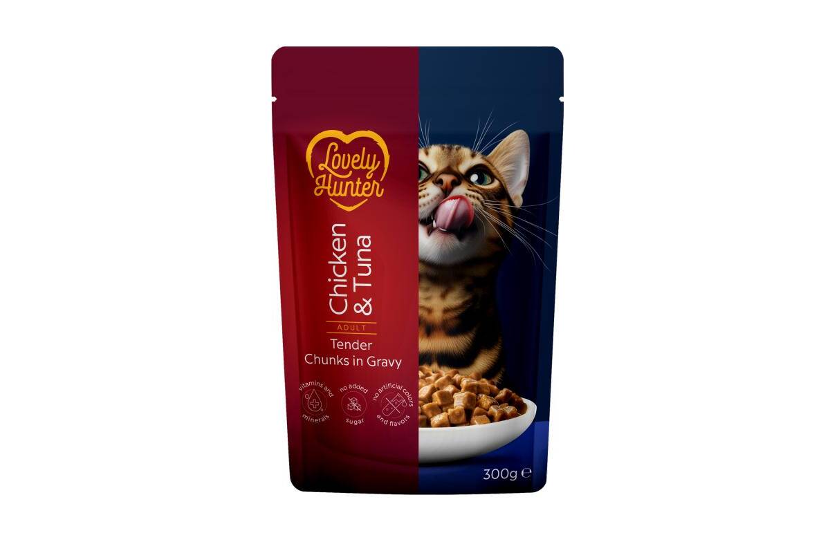 LOVELY HUNTER Märg lemmikloomatoit kana ja tuunikala täiskasvanud kassidele kõigile tõugudele 300 g