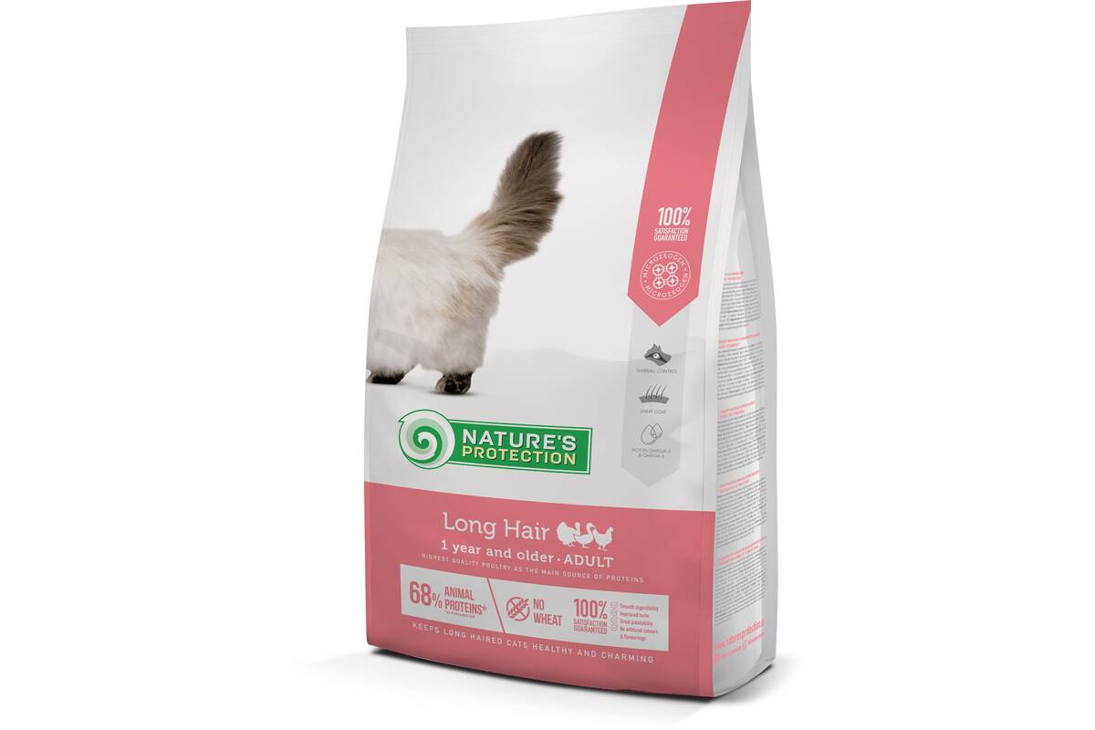NATURE'S PROTECTION kuivtoit täiskasvanud pikakarvalistele kassidele, kodulinnulihaga 7 kg