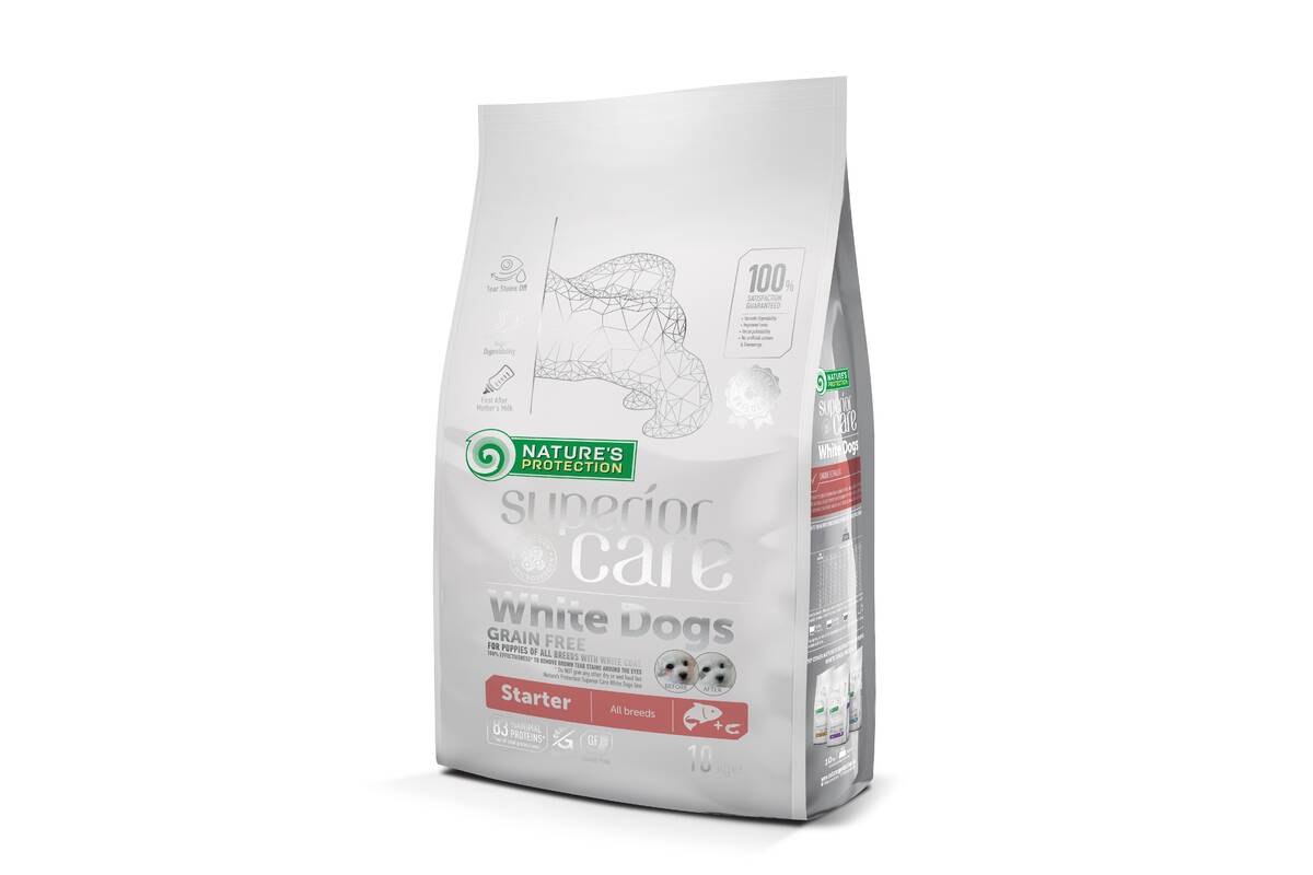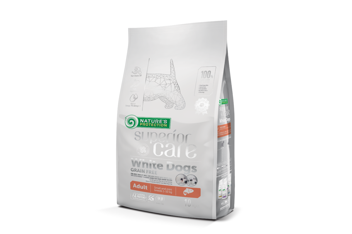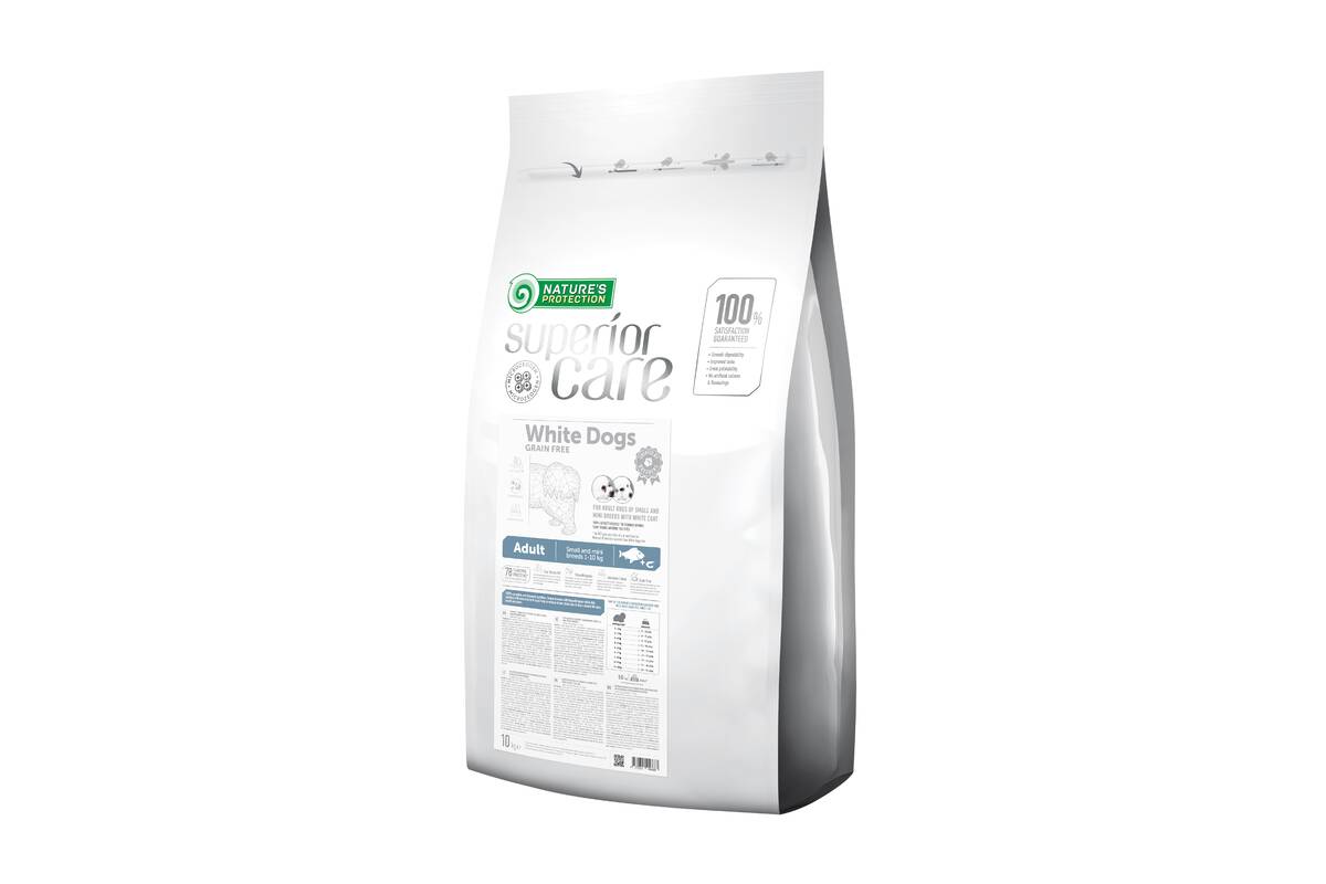 NATURE'S PROTECTION SUPERIOR CARE teraviljavaba kuivtoit noortele väikestele ja üliväikestele valgekarvalistele koertele, valge kalaga 10 kg