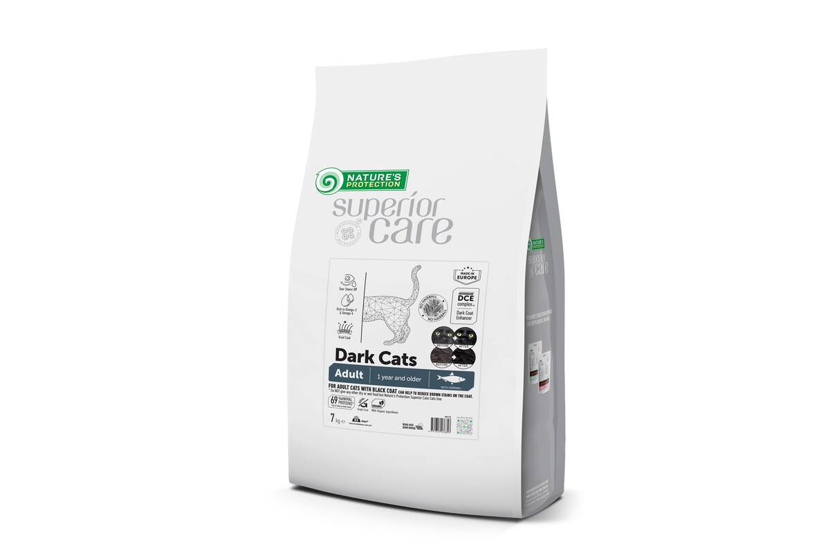 NATURE'S PROTECTION SUPERIOR CARE teraviljavaba kuivtoit heeringaga tumeda karvaga kõigile täiskasvanud kassidele 7 kg