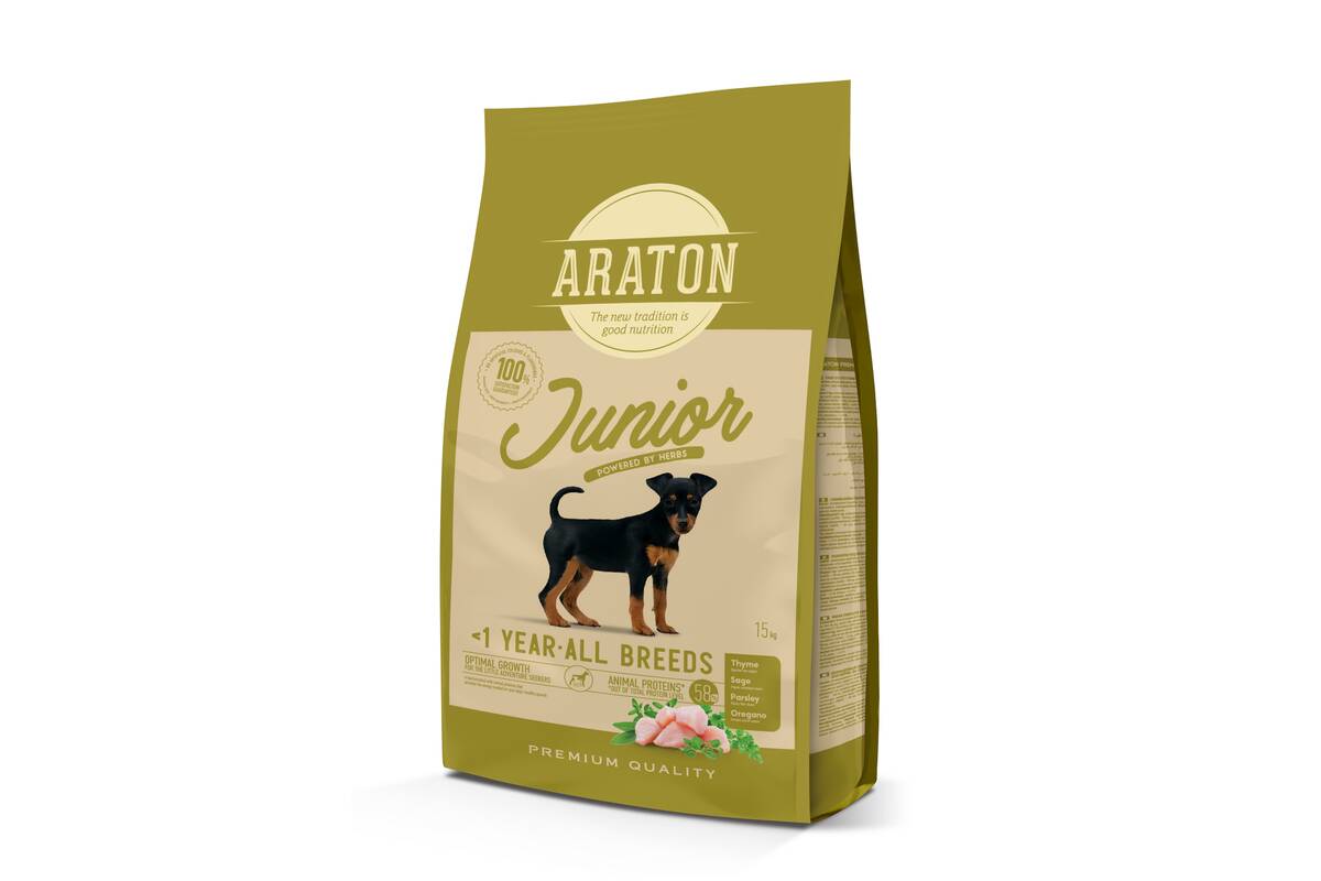 ARATON kuivtoit linnulihaga igat tõugu noortele koertele 15 kg