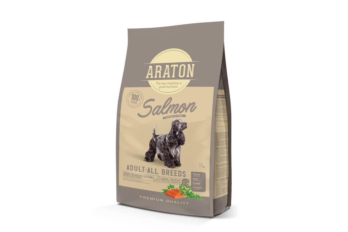 ARATON lõhega kuivtoit igat tõugu täiskasvanud koertele 15 kg