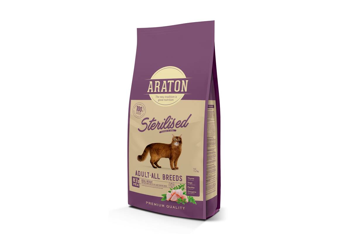 ARATON kuivtoit linnulihaga igat tõugu täiskasvanud steriliseeritud kassidele 1.5 kg