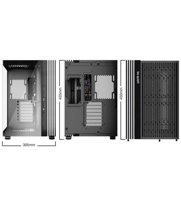 Case|BE QUIET|LIGHT BASE 900 DX|Tower|ATX|EATX|MicroATX|MiniITX|XL-ATX|Colour White|BGW70 GTIN: 4260052191767 Arvutikorpused <p><b>Exceptional from every angle</b><br />Be prepared for virtually any PC component available and make Light Base 900 DX White your creative show case.<br /><br /><b>LOOK AT ME!<br />Panorama design for perfect visibility</b><br />You deserve to show off what you got. Large window panels on the front and the side allow you to watch your PC components at work anytime. This makes Light Base 900 DX White the perfect choice as your show case.<br /><br /><b>BRIGHT LIGHTS<br />3 meters of LEDs</b><br />Light Base 900 DX White is predetermined for the big show. Nothing proves that more than the massive ARGB LED strip which is visible from all angles. The 3m long strip consists of 172 LEDs. With an included ARGB controller button and even more colors and modes with motherboard synchronization, you can make Light Base 900 DX White truly your own. Express yourself!<br /><br /><b>UP, UP, DOWN, DOWN, LEFT, RIGHT, LEFT, RIGHT…<br />Change the layout in literal seconds</b><br />It takes longer to read this text than to invert Light Base 900 DX White. With its relocatable feet, you can invert the PC case literally in seconds. You can also choose a horizontal layout, which is executed just as quick. No matter which layout your gaming room requires: Light Base 900 DX White delivers.<br /><br /><b>MAKE IT YOUR CASE<br />Large dimensions for endless creativity</b><br />Light Base 900 DX White features no preinstalled fans. However, up to 10 fans can be installed in total, making Light Base 900 DX White extremely versatile. With its extra spacious design, it can hold up to 420mm radiators simultaneously, an E-ATX motherboard and even the most powerful graphics cards. Thanks to the two-chamber design, drives and cables are neatly tucked in the back and do not get in the way of airflow.<br /><br /><b>MAXIMUM USABILITY<br />A new level of convenience</b><br />The detachable radiator and fan brackets in the top and bottom make installation of your cooling setup very easy. Each bracket fits a 420mm radiator, which can be installed at the same time. On top of that, you can install another radiator with up to 360mm length in the side, for a whopping 3 radiators. On top of that, Light Base 900 DX White comes with 2 ARGB and PWM hubs that offer 12 connectors in total. Their positions at the top and bottom allow you to conveniently connect your hardware.<br /><br /><b>HOLD MY GPU<br />For a neat interior</b><br />Light Base 900 DX White features a flexible VGA holder that subtly prevents your GPU from sagging. The best part: This holder works in any orientation and with a horizontally or vertically installed graphics card. The result is a clean look even if you use big and heavy graphics cards.<br /><br /><b>ON THE FLIPSIDE...<br />Support for motherboards with backside connector design</b><br />The motherboard tray fully supports backside connector designs like Asus BTF (Back to Future), MSI Project Zero, and Gigabyte Project Stealth, for a true and cable-free view.</p><p></p><ul><li>Fully windowed front and side panel for a stunning panoramic view on all your PC components</li><li>Impressive illumination from every angle with a massive ARGB LED strip</li><li>Can be switched to inverted or horizontal layout in literal seconds thanks to intuitive handling</li><li>Extra spacious design for up to two 420mm radiators at the same time and an E-ATX motherboard</li><li>For easy installation of radiators and fans outside of the case, the brackets in the top and bottom can be removed quickly</li><li>Support for motherboards with backside connector design</li><li>2 ARGB and fan hubs with 12 connectors in total</li></ul> | 3-6 tp | 175,93 € +0,04 € | Poodi | |