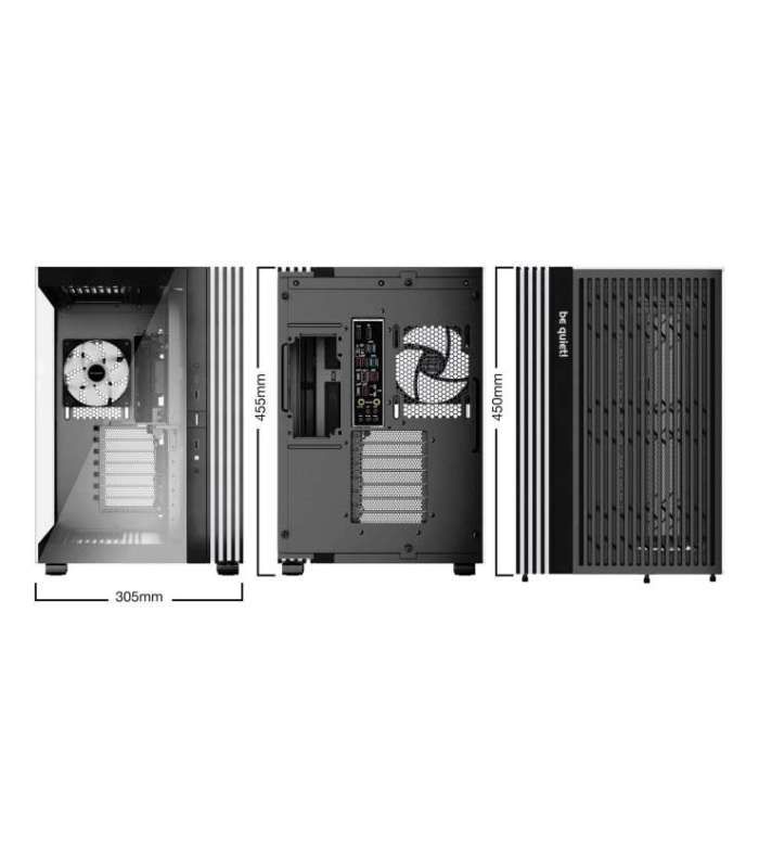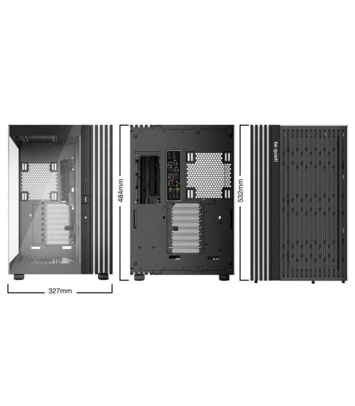 Case|BE QUIET|LIGHT BASE 600 DX|Tower|Case product features Transparent panel|ATX|MicroATX|MiniITX|Colour Black|BGW65 GTIN: 4260052191712 Arvutikorpused <p><b>Exceptional from every angle</b><br />Be prepared for virtually any PC component available and make Light Base 600 DX Black your creative show case.<br /><br /><b>LOOK AT ME!<br />Panorama design for perfect visibility</b><br />You deserve to show off what you got. Large window panels on the front and the side allow you to watch your PC components at work anytime. This makes Light Base 600 DX Black the perfect choice as your show case.<br /><br /><b>BRIGHT LIGHTS<br />1.33 meters of LEDs</b><br />Light Base 600 DX Black is predetermined for the big show. Nothing proves that more than the massive ARGB LED strip which is visible from all angles. The 1.33m long consists of 77 LEDs. With an included ARGB controller button and even more colors and modes with motherboard synchronization, you can make Light Base 600 DX Black truly your own. Express yourself!<br /><br /><b>UP, UP, DOWN, DOWN, LEFT, RIGHT, LEFT, RIGHT…<br />Change the layout in literal seconds</b><br />It takes longer to read this text than to invert Light Base 600 DX Black. With its relocatable feet, you can invert the PC case literally in seconds. You can also choose a horizontal layout, which is executed just as quick. No matter which layout your gaming room requires: Light Base 600 DX Black delivers.<br /><br /><b>MAKE IT YOUR CASE<br />Large dimensions for endless creativity</b><br />Light Base 600 DX Black features no preinstalled fans. However, up to 10 fans can be installed in total, making Light Base 600 DX Black extremely versatile. With its spacious design, it can hold up two 360mm radiators simultaneously, an ATX motherboard and even the most powerful graphics cards. Thanks to the dual chamber design, drives and cables are neatly tucked in the back and do not get in the way of airflow.<br /><br /><b>MAXIMUM USABILITY<br />A new level of convenience</b><br />Next to the radiators you can install in the top and the bottom, you can install another radiator with up to 240mm length in the side, for a whopping 3 radiators. On top of that, Light Base 600 DX Black comes with 2 ARGB and PWM hubs that offer 12 connectors in total. Their positions at the top and bottom allow you to conveniently connect your hardware.<br /><br /><b>HOLD MY GPU<br />For a neat interior</b><br />Light Base 600 DX Black features a flexible VGA holder that subtly prevents your GPU from sagging. The best part: This holder works in any orientation and with a horizontally or vertically installed graphics card. The result is a clean look even if you use big and heavy graphics cards.<br /><br /><b>ON THE FLIPSIDE...<br />Support for motherboards with backside connector design</b><br />The motherboard tray fully supports backside connector designs like Asus BTF (Back to Future), MSI Project Zero, and Gigabyte Project Stealth, for a true and cable-free view.</p><p></p><ul><li>Fully windowed front and side panel for a stunning panoramic view on all your PC components</li><li>Impressive illumination from every angle with a massive ARGB LED strip</li><li>Can be switched to inverted or horizontal layout in literal seconds thanks to intuitive handling</li><li>Spacious design for up to two 360mm radiators at the same time and an ATX motherboard</li><li>Support for motherboards with backside connector design</li><li>2 ARGB and fan hubs with 12 connectors in total</li></ul> | 3-6 tp | 138,89 € +0,02 € | Poodi | |
