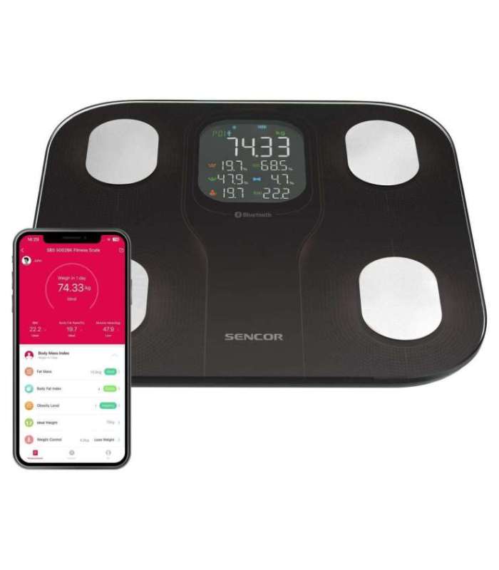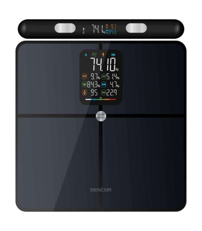 <p><strong>Nutikas treeningkaal Sencor kogu keha mõõtmiseks!<br /></strong><br /><strong>Bluetooth </strong>ühilduvus Sencor HOME rakenduse läbi iOS ning Android seadmetega.<br />Andmete sünkroonimine Apple Healthi, Google Fiti ja Fitbiti rakendustega.</p><p><strong>Võimalus luua profiile mitmele kasutajale korraga</strong>, et jälgida:</p><ul><li>Mõõtmiste ajalugu</li><li>Mõõtmiste analüüsi</li><li>Kalkuleeritud BMI (kehakaalu indeks), keharasva %, vee %, lihasmassi %, luutiheduse %</li></ul><p>Soovitab päevast kalorite tarbimist salvestatud andmete põhjal.</p><p>Automaatse sisselülituse funktsioon alustab mõõtmist kaalule astudes.<br />Võimalikud mõõtühikud KG/LB.<br />Automaatne väljalülitus.</p><p>Seadmega on kaasas 4 x 1,5 V AAA patareid.</p>