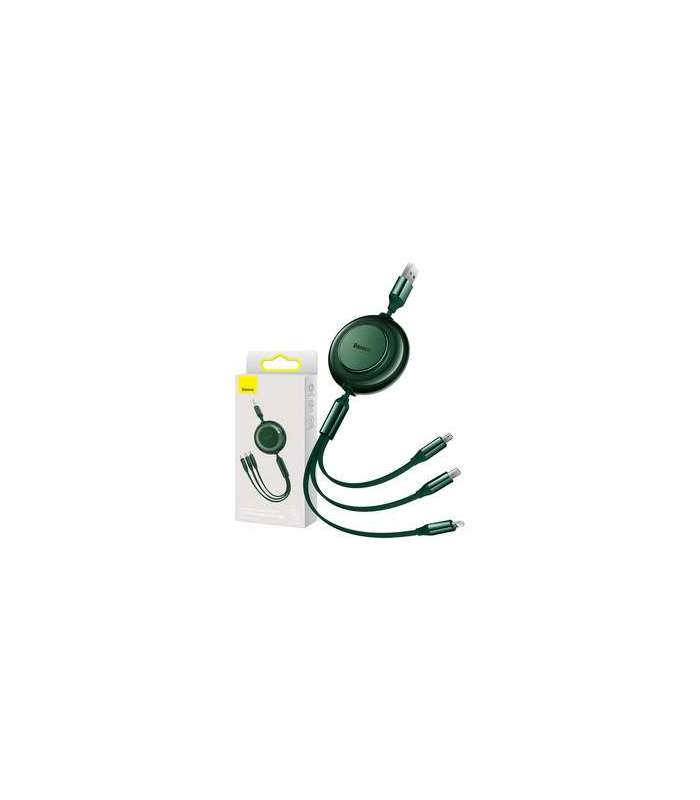 Baseus Bright Mirror 2, USB 3-in-1 cable for micro USB / USB-C / Lightning 3.5A 1.1m (Green) GTIN: 6932172609085 Kaablid <h3>Baseus Bright Mirror 2 3-in-1 USB cable</h3> <p>This practical cable from Baseus allows fast and safe charging of 3.5 A and data transmission on Lightning connector at 480 Mbps. With its help you will charge devices from different manufacturers, because the cable offers as many as 3 outputs: micro USB, Lightning and USB-C. Charging three devices at the same time will save you time, in addition, thanks to the retractable design you can adjust the length of the cable to your needs.</p> (image) <h3>For multiple devices</h3> <p>One cable for many different devices? It's possible! Baseus Bright Mirror 2 is equipped with three outputs, allowing you to quickly and safely renew the energy of various devices. The Lightning connector will be suitable for charging iPhones, the USB-C output will allow you to charge smartphones from brands such as Huawei, Honor, Xiaomi or Samsung, for example, and the micro USB connector will prove useful for renewing the energy of powerbanks, small fans and other devices. </p> (image) <h3>Well-designed</h3> <p>The cable's retractable design allows you to adjust the length to your individual needs - just pull the cable and stop at the optimal length for you (maximum 1.1 m). The round case is lightweight and handy, making it great for transport. A modern design and several color variants are also a plus - you're sure to find something to your liking.</p> (image) <h3>Even more possibilities</h3> <p>The cable allows not only fast power renewal, but also allows you to transfer data - on the Lightning connector the transmission speed is 480 Mbps. This allows you to transfer your vacation photos, necessary documents or favorite music at express speed. The cable is made of high-quality TPE material, and the flat design increases resistance to wear and extreme temperatures. </p> (image) <div class="table-wrapper"> <table> <tbody> <tr> <th>Manufacturer </th> <td>Baseus</td> </tr> <tr> <th>Name </th> <td>USB 3-in-1 cable Baseus Bright Mirror 2</td> </tr> <tr> <th>Model </th> <td>CAMJ010006</td> </tr> <tr> <th>Material </th> <td>Aluminum alloy + TPE</td> </tr> <tr> <th>Transmission speed (Lightning connector)</th> <td>480 MB/s</td> </tr> <tr> <th>Length </th> <td>Up to 1.1 m</td> </tr> <tr> <th>Input </th> <td>USB</td> </tr> <tr> <th>Output </th> <td>Micro USB + Lightning + USB-C</td> </tr> <tr> <th>Color </th> <td>Green</td> </tr> </tbody> </table> </div> | 2-5 tp | 12,28 € | Poodi | |