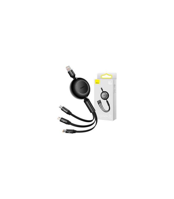 Baseus Bright Mirror 3, USB 3-in-1 cable for micro USB / USB-C / Lightning 66W / 2A 1.1m (Black) GTIN: 6932172609092 Kaablid <h3>USB 3-in-1 Baseus Bright Mirror 3 cable, micro USB / Lightning / USB-C, 66W / 2A, 1.1m (black)</h3> <p>With the Baseus Bright Mirror 3-in-1 USB cable you will gain access to fast charging of laptops, Apple devices and other equipment. The cable also allows data transmission (Lightning) at speeds of up to 480 Mbps. The retractable, compact design ensures easy storage and transportation, and the built-in security system protects connected devices.</p> (image) <h3>Fast charging</h3> <p>Using the USB-C output, you can charge your device with up to 66W of power. This means that you will replenish the Huawei Mate 40 Pro's power up to 86% in about 30 minutes. So bet on a Baseus brand cable and don't waste time waiting for your gear to charge!</p> (image) <h3>Carefully refined design</h3> <p>The cable has 3 output ports - USB-C, Lightning and micro USB. Thus, you will be able to use it in many situations, moreover, you can plug in 3 devices at once without any problems. The compact design with a retractable mechanism ensures easy storage and transportation. Bet on the combination of functionality and convenience with Baseus Bright Mirror 3 !</p> (image) <h3>Protection and performance</h3> <p>The cable uses a built-in chip that verifies the temperature altitude in real time, protecting the connected equipment. What's more, the cable also allows data transfer on the Lightning connector - the speed is up to 480 Mbps.</p> (image) <div class="table-wrapper"> <table> <tbody> <tr><th>Manufacturer</th> <td>Baseus</td> </tr> <tr><th>Model</th> <td>CAMJ0101</td> </tr> <tr><th>Color</th> <td>Black</td> </tr> <tr><th>Material</th> <td>PC + TPE</td> </tr> <tr><th>Weight</th> <td>Approx. 81 g</td> </tr> <tr><th>Length</th> <td>1.1 m</td> </tr> <tr><th>Transmission speed</th> <td>iP / 480 Mbps</td> </tr> <tr><th>Input</th> <td>USB-C</td> </tr> <tr><th>Outputs</th> <td>Micro USB / Lightning / USB-C</td> </tr> <tr><th>Power</th> <td>USB-C - 66W / Lightning - 2A / Micro USB - 2A <br />USB-C+Lightning+Micro USB (5V / 3.5A)</td> </tr> </tbody> </table> </div> | 2-5 tp | 9,82 € −0,05 € | Poodi | |
