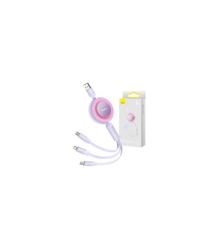 Baseus Bright Mirror 2, 3-in-1 USB 3-in-1 cable for micro USB / USB-C / Lightning 3.5A 1.1m (Purple) GTIN: 6932172609078 Kaablid <h3>Baseus Bright Mirror 2 3-in-1 USB cable</h3> <p>This practical cable from Baseus allows fast and safe charging of 3.5 A and data transmission on Lightning connector at 480 Mbps. With its help you will charge devices from different manufacturers, because the cable offers as many as 3 outputs: micro USB, Lightning and USB-C. Charging three devices at the same time will save you time, in addition, thanks to the retractable design you can adjust the length of the cable to your needs.</p> (image) <h3>For multiple devices</h3> <p>One cable for many different devices? It's possible! Baseus Bright Mirror 2 is equipped with three outputs, allowing you to quickly and safely renew the energy of various devices. The Lightning connector will be suitable for charging iPhones, the USB-C output will allow you to charge smartphones from brands such as Huawei, Honor, Xiaomi or Samsung, for example, and the micro USB connector will prove useful for renewing the energy of powerbanks, small fans and other devices. </p> (image) <h3>Well-designed</h3> <p>The cable's retractable design allows you to adjust the length to your individual needs - just pull the cable and stop at the optimal length for you (maximum 1.1 m). The round case is lightweight and handy, making it great for transport. A modern design and several color variants are also a plus - you're sure to find something to your liking.</p> (image) <h3>Even more possibilities</h3> <p>The cable allows not only fast power renewal, but also allows you to transfer data - on the Lightning connector the transmission speed is 480 Mbps. This will allow you to transfer your vacation photos, necessary documents or favorite music at express speed. The cable is made of high-quality TPE material, and the flat design increases resistance to wear and extreme temperatures. </p> (image) <div class="table-wrapper"> <table> <tbody> <tr> <th>Manufacturer </th> <td>Baseus</td> </tr> <tr> <th>Name </th> <td>USB 3-in-1 cable Baseus Bright Mirror 2</td> </tr> <tr> <th>Model </th> <td>CAMJ010005</td> </tr> <tr> <th>Material </th> <td>Aluminum alloy + TPE</td> </tr> <tr> <th>Transmission speed (Lightning connector)</th> <td>480 MB/s</td> </tr> <tr> <th>Length </th> <td>Up to 1.1 m</td> </tr> <tr> <th>Input </th> <td>USB</td> </tr> <tr> <th>Output </th> <td>Micro USB + Lightning + USB-C</td> </tr> <tr> <th>Color </th> <td>Purple</td> </tr> </tbody> </table> </div> | 2-5 tp | 7,89 € | Poodi | |