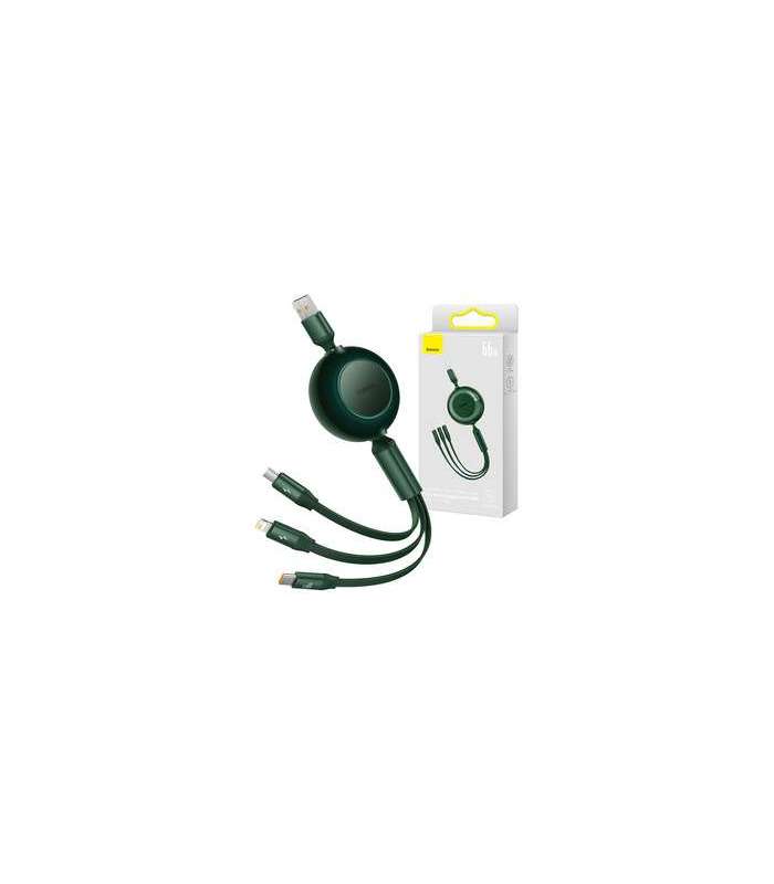 Baseus Bright Mirror 3, USB 3-in-1 cable for micro USB / USB-C / Lightning 66W / 2A 1.1m (Green) GTIN: 6932172609122 Kaablid <h3>USB 3-in-1 Baseus Bright Mirror 3 cable, micro USB / Lightning / USB-C, 66W / 2A, 1.1m (green)</h3> <p>With the Baseus Bright Mirror 3-in-1 USB cable you will gain access to fast charging of laptops, Apple devices and other equipment. The cable also allows data transmission (Lightning) at speeds of up to 480 Mbps. The retractable, compact design ensures easy storage and transportation, and the built-in security system protects connected devices.</p> (image) <h3>Fast charging</h3> <p>Using the USB-C output, you can charge your device with up to 66W of power. This means that you will replenish the Huawei Mate 40 Pro's power up to 86% in about 30 minutes. So bet on a Baseus brand cable and don't waste time waiting for your gear to charge!</p> (image) <h3>Carefully refined design</h3> <p>The cable has 3 output ports - USB-C, Lightning and micro USB. Thanks to this, you will be able to use it in many situations, moreover, you can plug in 3 devices at once without any problems. The compact design with a retractable mechanism ensures easy storage and transportation. Bet on the combination of functionality and convenience with Baseus Bright Mirror 3 !</p> (image) <h3>Protection and performance</h3> <p>The cable uses a built-in chip that verifies the temperature altitude in real time, protecting the connected equipment. What's more, the cable also allows data transfer on the Lightning connector - the speed is up to 480 Mbps.</p> (image) <div class="table-wrapper"> <table> <tbody> <tr><th>Manufacturer</th> <td>Baseus</td> </tr> <tr><th>Model</th> <td>CAMJ010106</td> </tr> <tr><th>Color</th> <td>Green</td> </tr> <tr><th>Material</th> <td>PC + TPE</td> </tr> <tr><th>Weight</th> <td>Approx. 81 g</td> </tr> <tr><th>Length</th> <td>1.1 m</td> </tr> <tr><th>Transmission speed</th> <td>iP / 480 Mbps</td> </tr> <tr><th>Input</th> <td>USB</td> </tr> <tr><th>Outputs</th> <td>Micro USB / Lightning / USB-C</td> </tr> <tr><th>Power</th> <td>USB-C - 66W / Lightning - 2A / Micro USB - 2A <br />USB-C+Lightning+Micro USB (5V / 3.5A)</td> </tr> </tbody> </table> </div> | 2-5 tp | 13,47 € −0,02 € | Poodi | |