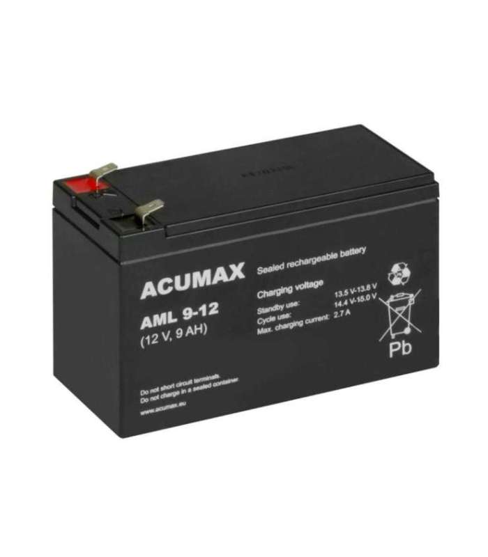BATTERY 12V 9AH VRLA/AV9-12 T2 ACUMAX EMU GTIN: 5902367801809 UPS akud <p></p><p>Sealed, maintenance free, lead-acid battery, VRLA type, with 5 years designed life (according to Eurobat: 3-5 years - Standard Commercial). Designed for standby use in uninterruptible power supplies (UPS). AV 9 - 12 has higher capacity and much better constant power and constant current discharge characteristics, especially for short discharge times (5-20 min.), than similar 7Ah – 12V battery thank to lower internal resistance. Container dimensions are the same. <br /><br /> <strong>ATTENTION! </strong>This battery equipped with T2 type terminals: 7.85x6.35x0.8 mm</p> | 1-4 tp | 35,84 € −0,14 € | Poodi | |