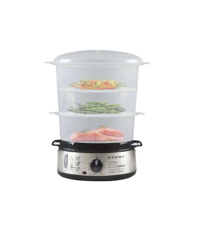 Beper BC.250 GTIN: 8051772719425 Toiduaurutajad <div>Aurupliit</div> <div> </div> <div>Teraskonstruktsiooniga aurupliit ja 3 läbipaistvast BPA-vabast plastikust kaussi kogumahutavusega 9L. 1L paak veetaseme indikaatoriga ja lisamise võimalusega isegi toiduvalmistamise ajal. Vedeliku kogumisalus sangadega. Töötuli ja 60-minutilise taimeriga nupp. Automaatne väljalülitus, kui vesi saab otsa. Kaasas riisi keedunõu. Lihtne puhastada ja hoiustada tänu ruumisäästlikele kaussidele.</div> <div> </div> <div>Toote suurus: 32 x 22 x 42 cm</div> <div>Materjal: roostevaba teras/ABS</div> <div>Võimsus: 800 W</div> | 44,78 € | Poodi | ||