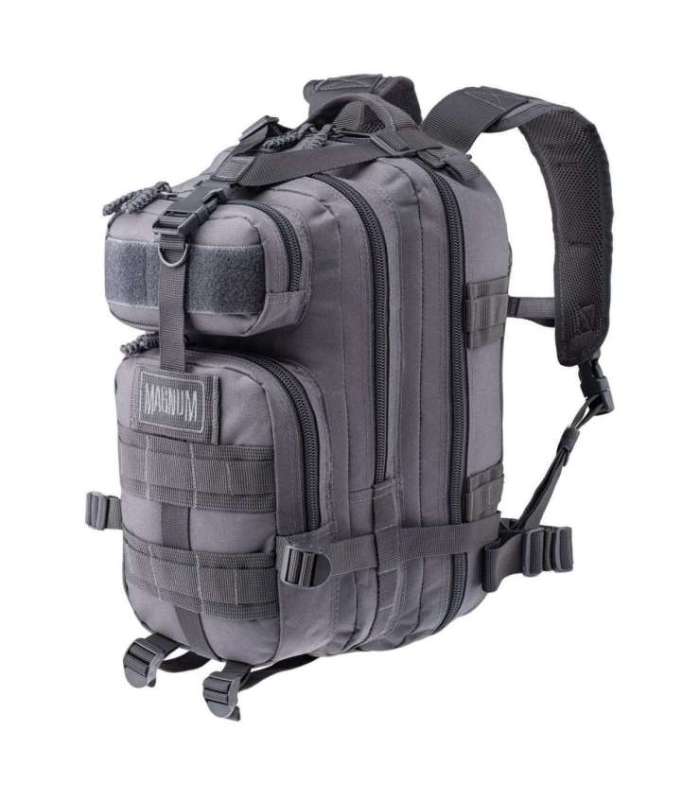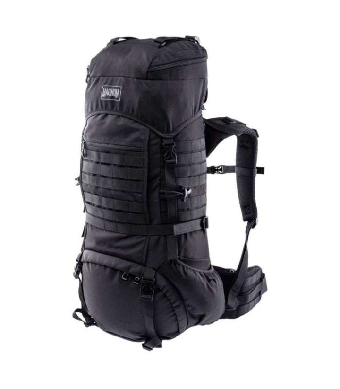 BACKPACK CAPACITY: 25 L SIZE: 41 x 24 x 25 cm WEIGHT: 1,1 kg MATERIAL COMPOSITION: 100% POLYESTER SPECIFICATION: - MOLLE LOOPS - THREE LARGE EXTERIOR ZIPPERED COMPARTMENTS - ADJUSTABLE PADDED SHOULDER STRAPS ARE REMOVABLE OR IT CAN BE CARRIED WITH ANY OF THE THREE CARRY HANDLES - ADJUSTABLE CHEST AND HIP BELT - CAMELBAK POCKET MAGNUM FOX BACKPACK BLACK