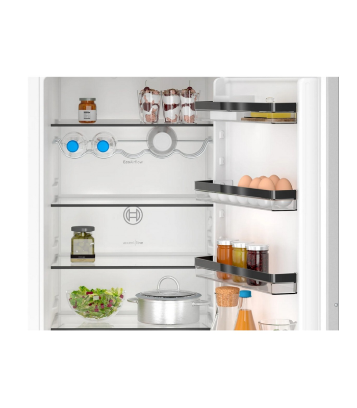 <p style="text-align:justify;"><strong>Seeria 4, suur integreeritav külmik-sügavkülmik.</strong><br /><strong>Integreeritud XL</strong><br />Lisakõrgus annab rohkem ruumi!Kas külmikuruum kipub otsa saama? Meie integreeritud XL külmik tuleb appi. Võrreldes tavalise integreeritud sügavkülmikuga, annab 11% lisaruumi kindluse, et sul ei jää enam kunagi ruumi puudu. Tänu eriti kõrgele disainile saad hoiustada rohkem asju, ilma lisaruutmeetreid hõivamata. Ei täistopitud riiulitele, rohkem ruumi sinu lemmiktoitudele ja -jookidele.<br /><strong>VitaFresh XXL <0 °C></strong><br />Rohkelt ruumi värsketele saadustele. Ruumikas VitaFresh XXL < 0 °C> süsteem pakub värskele toidule ideaalset säilituskeskkonda. Liha ja kala on võimalik hoida madalamal temperatuuril ning kohandatavate tingimustega sahtlis püsivad puu- ja köögiviljad tõeliselt värsked.<br /><strong>NoFrost</strong><br />Sügavkülmikut ei ole vaja enam kunagi sulatada. Sügavkülmiku sisemuses ühtlaselt ringlev kuiv külm õhk takistab jää moodustumist, mistõttu jääd ei kogune ei tagaseinale ega ka sahtlitesse. NoFrost on ülimalt mugav, kuna te ei pea enam kunagi sügavkülmikut sulatama.<br /><strong>Eco Airflow</strong><br />Püsiv temperatuur aitab tagada värskuse kauemaks.<br />Ebaühtlane temperatuur külmikus võib mõjutada toidu maitset ja säilivust.Eco Airflow aitab niiskust ja temperatuuri ühtlaselt jaotada, et toit püsiks kauem värskena.<br /><strong>Hoiatusheli</strong><br />Kui uks ei ole suletud või tekib mõni muu tõrge, antakse sellest märku hoiatusheli või valgusega.<br /><strong>Eriti kindlad ukseriiulid.</strong><br />Ukseriiulite evolutsioon. Tänu kõrgematele äärtele mahutavad optimeeritud ukseriiulid rohkem ning on stabiilsemad. Välja kukkuvad ja ümber minevad asjad, näiteks väiksed purgid ja pudelid jäävad minevikku. Tänu unikaalsele tootmistehnoloogiale ja riiulite elegantsele värvile on need ilusad.<br /><strong>2 jahutussüsteemi</strong><br />Kaks jahutussüsteemi kiiremaks jahutamiseks. Kahe jahutussüsteemiga seadmetes saab kiiremaks jahutamiseks külmiku ja sügavkülma eraldi seadistada. Lihtsasti kasutatav juhtimissüsteem lubab temperatuure eraldi seadistada.<br /><strong>LED-valgustus</strong><br />Hoia oma toidukaup hästi nähtaval. LED-valgustusega ei jää sul külmkapis miski märkamatuks. Kauakestvad, energiasäästlikud LED-lambid valgustavad eredalt ja ühtlaselt kogu kapi sisu, nii et näed kõike selgelt. Kui külmikus on Home Connect tehnoloogia, saad LED-valgustust läbi äpi kontrollida. Lülita valgustus läbi mobiiltelefoni sisse ja välja või muuda selle eredus endale sobivaks. Ära koba pimeduses - uuenda oma külmik LED-valgustusele juba täna.<br /><strong>Superjahutus</strong><br />Külmik, mis oskab lahe olla. Superjahutuse funktsiooniga saad lühikeseks ajaks enne poes käimist külmiku temperatuuri langetada. See tagab, et su värske toidukaup püsib õigel temperatuuril. Ühe nupuvajutusega saad temperatuuri langetada kuni 2 kraadini. Ebavajaliku energiakulu ärahoidmiseks lülitab funktsioon tavarežiimile tagasi 6-15 tunni jooksul. Kui sinu seade on ühendatud, saad Superjahutuse funktsiooni seadistada Home Connect äpi kaudu.<br /><strong>VitaFresh XXL</strong><br />Eriti palju ruumi puu- ja köögiviljade kauem värskena hoidmiseks. VitaFresh XXL sahtel pakub tänu reguleeritavale temperatuurile ideaalset säilituskeskkonda kogu sinu värskele toidule. Sahtli temperatuuri saab reguleerida, et sinu puu- ja köögiviljad võimalikult kaua värskena püsiksid.<br /><strong>Elektrooniline temperatuurikontroll</strong><br />Külmkapp, mis pakub täiuslikku täpsust. Unusta külmunud salat ja kahtlase värskusega liha ning naudi täpselt jahutatud toitu. Elektroonilise temperatuurikontrolli abil saad valida täpse külmkapi temperatuuri ning seda igal ajal elektrooniliselt kuvalt kontrollida. Kui sinu seade on ühendatud Home Connect funktsiooniga, ei pea sa isegi kodus olema, et temperatuuri äpi kaudu reguleerida ja toidu täiuslikku värskust säilitada. Vot see on midagi lahedat.</p>