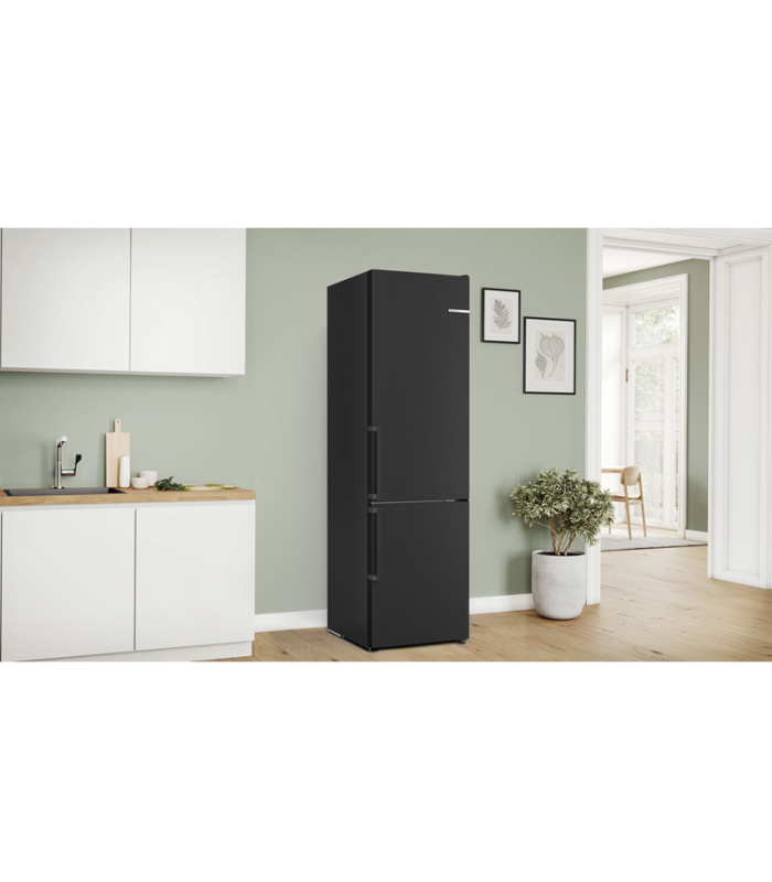 <p style="text-align:justify;"><span style="font-size:small;"><strong>Bosch KGN39VXCT – must harjatud teras, Series | 4, 203 × 60 cm | NoFrost | VitaFresh XXL</strong></span></p><p style="text-align:justify;"><span style="font-size:small;">Bosch KGN39VXCT on stiilne mustast harjatud terasest külmik-sügavkülmik, mille alumises osas paiknev NoFrost-sügavkülm ja Bosch VitaFresh XXL süsteem hoiavad toidu värskena oluliselt kauem. Kvaliteetne disain, suur mahutavus ja läbimõeldud kasutusmugavus – ideaalne valik igapäevaeluks.</span></p><p style="text-align:justify;"><span style="font-size:small;">Peamised eelised</span></p><p style="text-align:justify;"><span style="font-size:small;">✨ VitaFresh XXL <0°C> – hoiab liha ja kala madalamal temperatuuril ning puu- ja köögiviljad võimalikult värsked</span><br /><span style="font-size:small;">✨ NoFrost – enam pole vaja sügavkülma käsitsi sulatada</span><br /><span style="font-size:small;">✨ Multi Airflow – ühtlane temperatuur igas riiulis</span><br /><span style="font-size:small;">✨ Perfect Fit – saab paigutada otse vastu seina või süvendisse</span><br /><span style="font-size:small;">✨ LED-valgustus – energiasäästlik ja ühtlane valgustus</span><br /><span style="font-size:small;">✨ Kaks jahutussüsteemi – eraldi seadistatav külmik ja sügavkülm</span><br /><span style="font-size:small;">✨ Superjahutus – kiiresti värske toidu kiireks ja ohutuks jahutamiseks</span></p><p style="text-align:justify;"><strong><span style="font-size:small;">VitaFresh XXL – rohkelt ruumi värskusele</span></strong><br /><span style="font-size:small;">Boschi VitaFresh XXL <0°C> sahtlid loovad värskete toitude jaoks ideaalse keskkonna. Liha ja kala saab hoida madalamal temperatuuril, puuviljad ja köögiviljad püsivad mahlased ja krõmpsud kauem.</span></p><p style="text-align:justify;"><strong><span style="font-size:small;">Multi Airflow – püsiv temperatuur</span></strong><br /><span style="font-size:small;">Ühtlane õhuringlus ja temperatuuri jaotus tagavad selle, et toit säilitab maitse ja värskuse igas külmiku osas – riiulitest kuni tagumisteni nurkadeni.</span></p><p style="text-align:justify;"><strong><span style="font-size:small;">Perfect Fit</span></strong><br /><span style="font-size:small;">Erinevalt paljudest külmikutest saab Bosch KGN39VXCT mudelit paigutada otse vastu seina – uksed ja sahtlid avanevad vabalt. Ideaalne väiksemasse kööki või sisseehitatud välimusega lahendusse.</span></p><p style="text-align:justify;"><strong><span style="font-size:small;">LED-valgustus</span></strong><br /><span style="font-size:small;">Hele ja energiasäästlik LED-valgustus tagab laitmatu ülevaate külmkapi sisust. Midagi ei jää märkamata.</span></p><p style="text-align:justify;"><strong><span style="font-size:small;">Kaks jahutussüsteemi</span></strong><br /><span style="font-size:small;">Külmikut ja sügavkülma saab juhtida eraldi, mis tagab kiire ja täpse temperatuurikontrolli.</span></p><p style="text-align:justify;"><strong><span style="font-size:small;">Superjahutus</span></strong><br /><span style="font-size:small;">Enne poes käimist lülita sisse SuperCool funktsioon – värsked toiduained jahutatakse kiiresti õige temperatuurini. Funktsioon lülitab end automaatselt tagasi energiasäästurežiimi.</span></p>