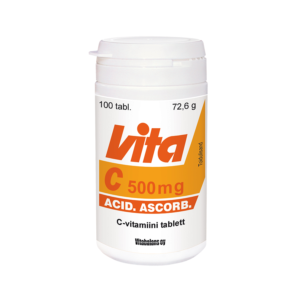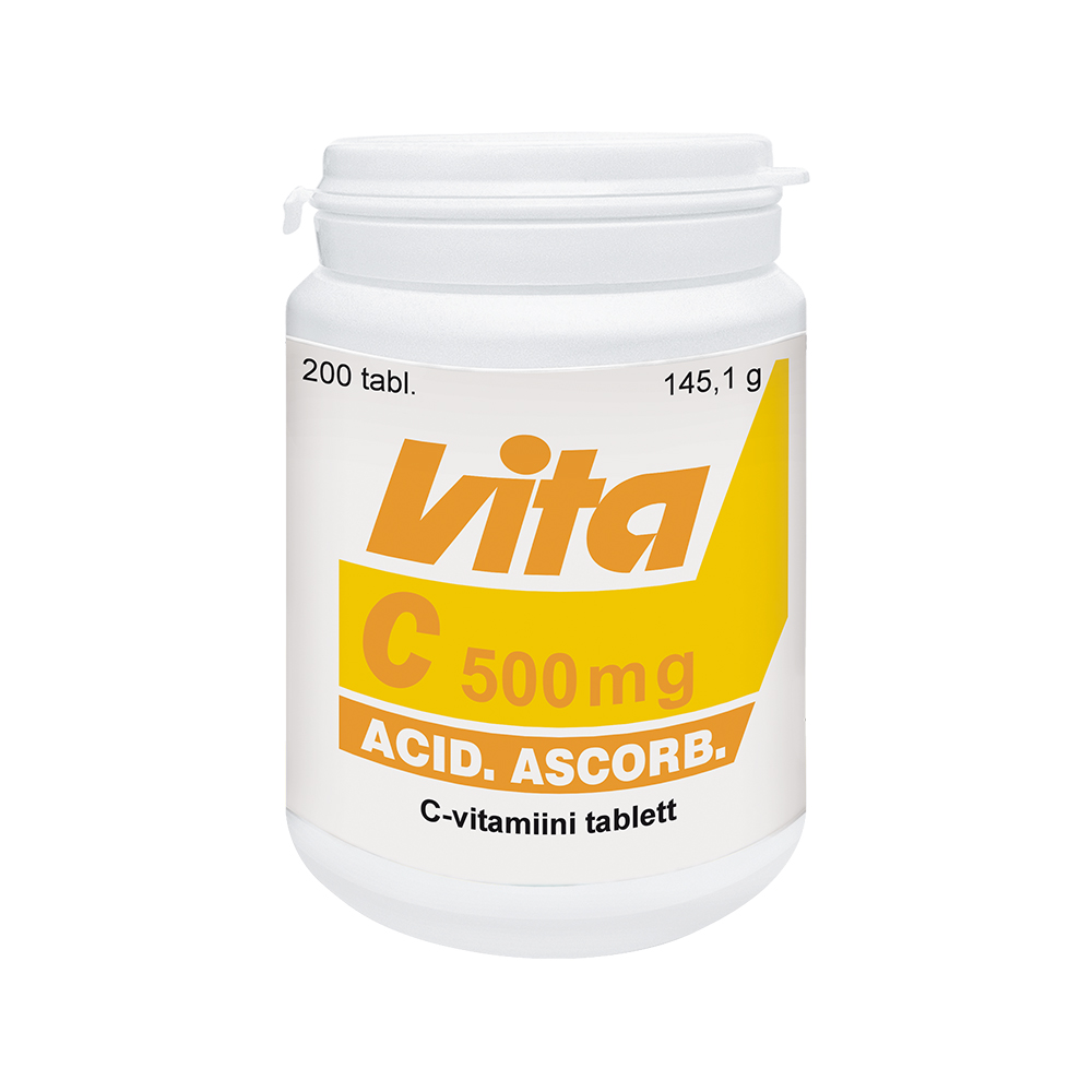 Tootetutvustus Vitamiin C tabletid 500 mg N50 Toidulisand. Vitamiin C aitab kaasa närvisüsteemi ning immuunsüsteemi normaalsele talitlusele, aitab kaitsta rakke oksüdatiivse stressi eest, aitab vähendada väsimust ja kurnatust. Päevaseks tarbimiseks soovitatav kogus ning tarvitamisjuhised Täiskasvanutele ja lastele alates 12. eluaastast 1 tablett päevas pärast sööki. Tablette tuleb võtta koos veega. Sisaldus päevase annuse kohta Päevane annus 1 tablett sisaldab 500 mg C-vitamiini (625 %NRV*). *NR...