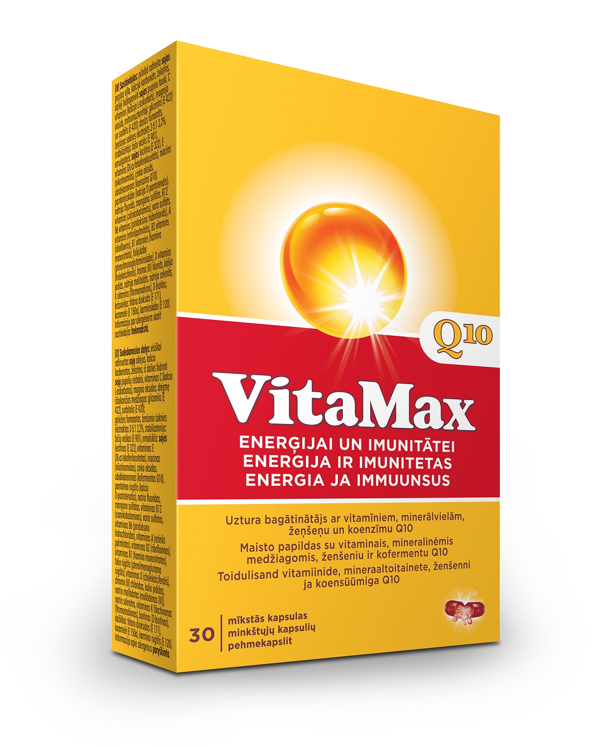 Tootetutvustus VITAMAXQ10-i koosseisus on 26 hoolikalt valitud toimeainet – vitamiinid ja mineraalained. Koensüüm Q10 on asendamatu, sest sellel on tähtis osa rakkude biokeemilisteks protsessideks vajaliku energia tootmises. Koensüüm Q10 on seotud kõigi energia tootmisprotsesside ja energia kogumisega rakkudesse. See on ka oluline antioksüdant, mis neutraliseerib rakukahjustusi tekitavaid vabasid radikaale. Koensüümi Q10 on kõigis organismi rakkudes. See varustab nahka energiaga ja tugevdab seda...