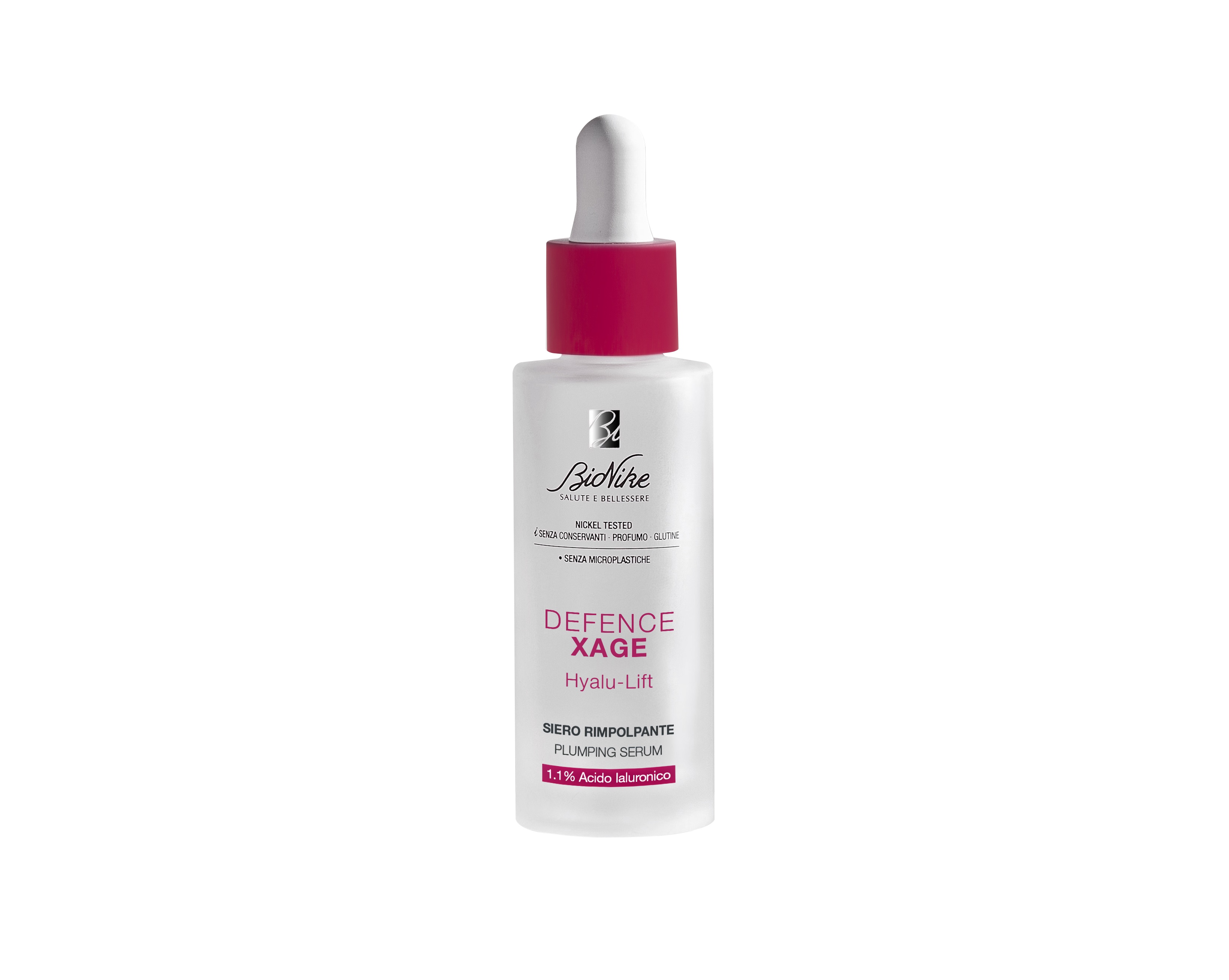 SÄILITUSAINETEVABA • GLUTEENIVABA • LÕHNAAINETEVABA • NIKKEL-TESTITUD BIONIKE XAGE SEERUM PINGULDAV HYALU-LIFT Niisutab, täidab ja vähendab kortse Kontsentreeritud seerum sisaldab 1,1% hüaluroonhapet, mis on kolmes molekulmassis, et nahka tugevalt niisutada ja pinguldada, ning multifunktsionaalne heksapeptiid, millel on trimmivad ja kortsudevastased omadused. Suurendab naha elastsust ja muudab naha pringimaks, vähendades samal ajal kortse ja peeneid jooni ja s.h. kulmuko...