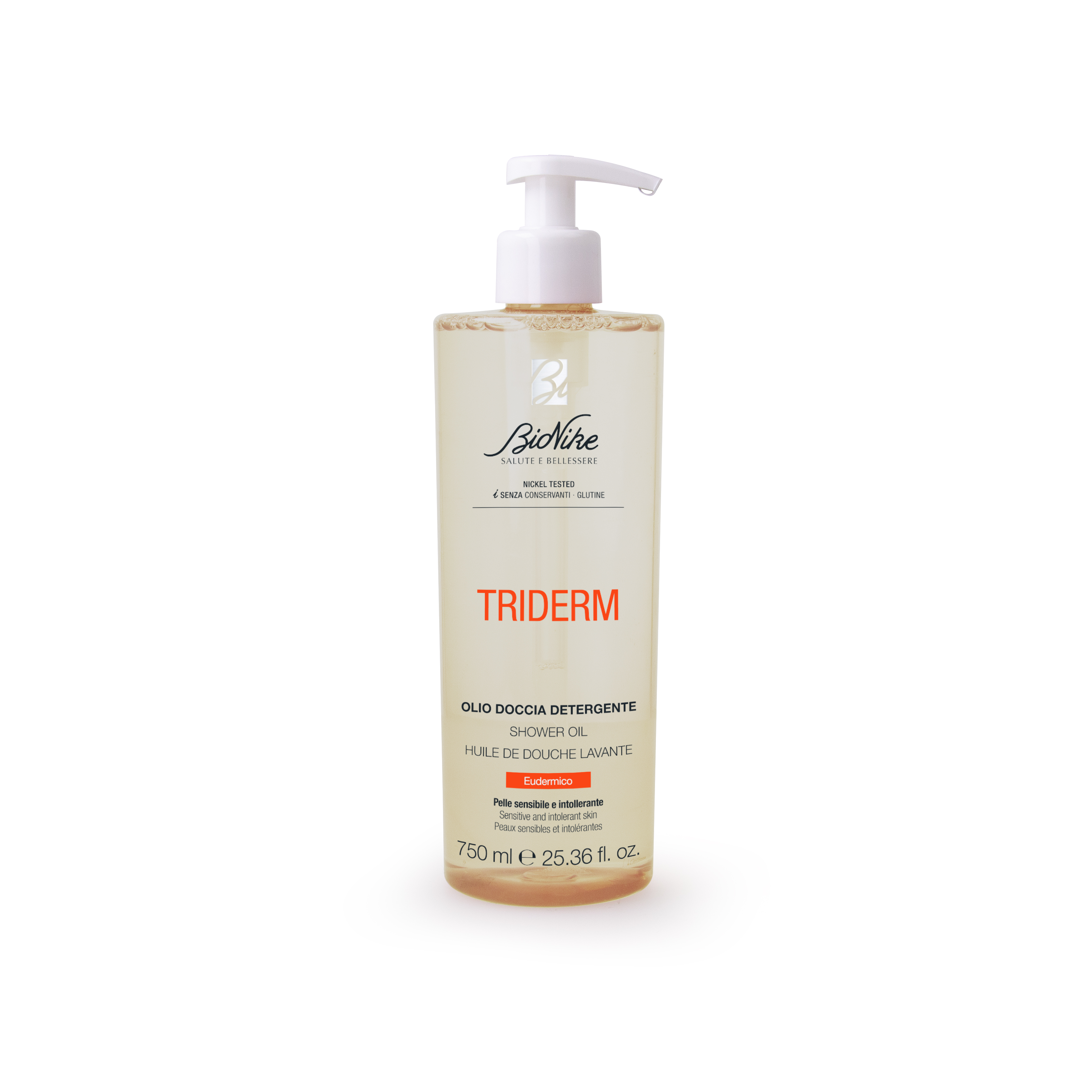 BIONIKE TRIDERM DUSHIÕLI KÕIKIDELE NAHATÜÜPIDELE 750 ML SÄILITUSAINETEVABA • GLUTEENIVABA • NIKKEL-TESTITUD Õrn ja pehmendav dušiõli, mida soovitatakse igapäevaseks näo ja keha pesuks. Sisaldab õrna, hüpoallergilist lõhna. Omab nahale sarnast pH-d. Dermatoloogiliselt testitud tundlikul nahal. Biolagunev koostis*. *Kontrollitud OECD 301F meetodi abil. Kasutamisjuhised Kasutage toodet igapäevaseks pesuks. Toode on soovitatav ka ärritunud, tundliku ja kuiva naha korral. Kan...