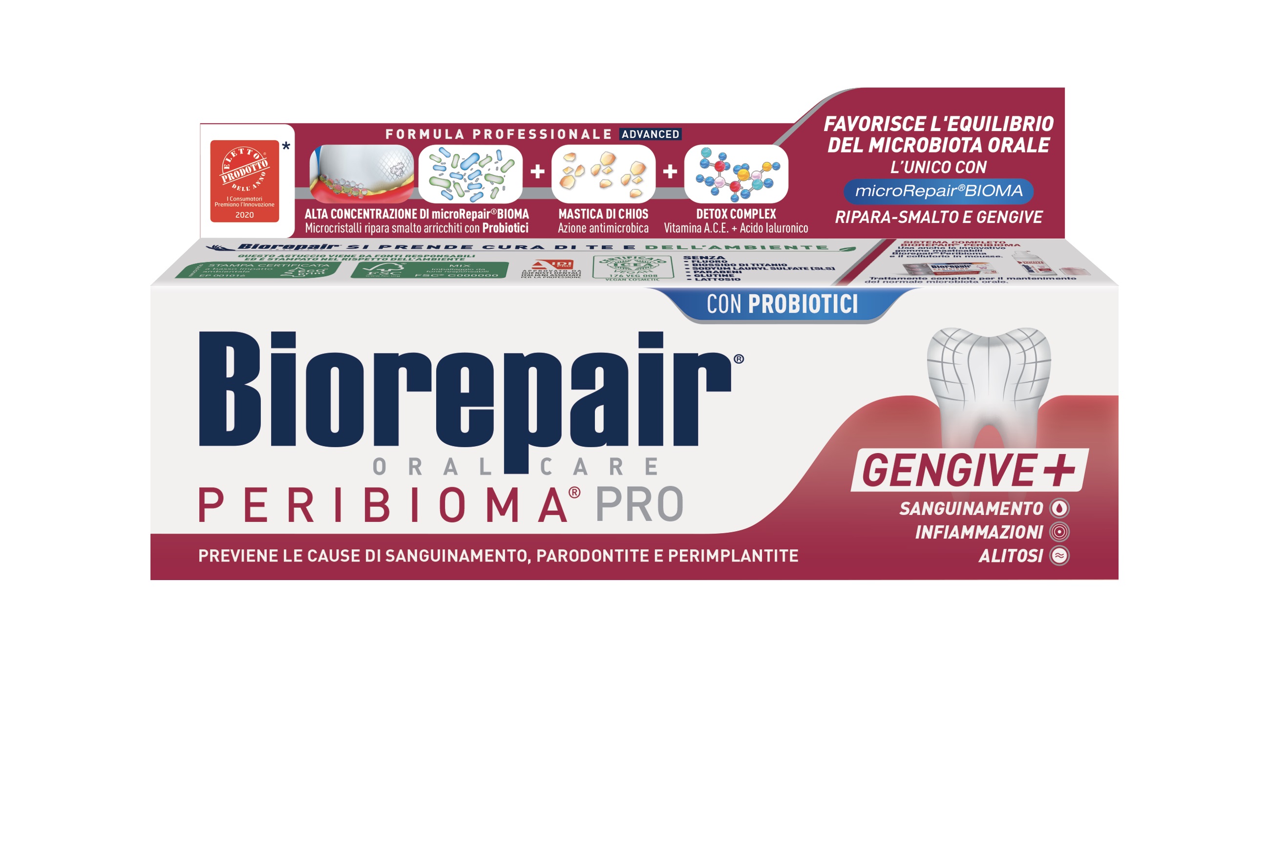 Hambapasta Biorepair Peribioma on mõeldud võitlemiseks igemepõletiku, halva suulõhna ja igemete veritsemise vastu. Toote ainulaadne koostis põhineb microRepair®BIOMA hambaemaili parandavatel mikrokristallidel, millele on lisatud hoolikalt valitud probiootikume (Bifido- ja lactobakterid), need aitavad taastada suuõõne normaalse mikrofloora ning kaitsta peamiste suuõõne põletike põhjustajate eest. Koostis on rikastatud antibakteriaalse toimega Chiose mastiksiga, antioksüda...