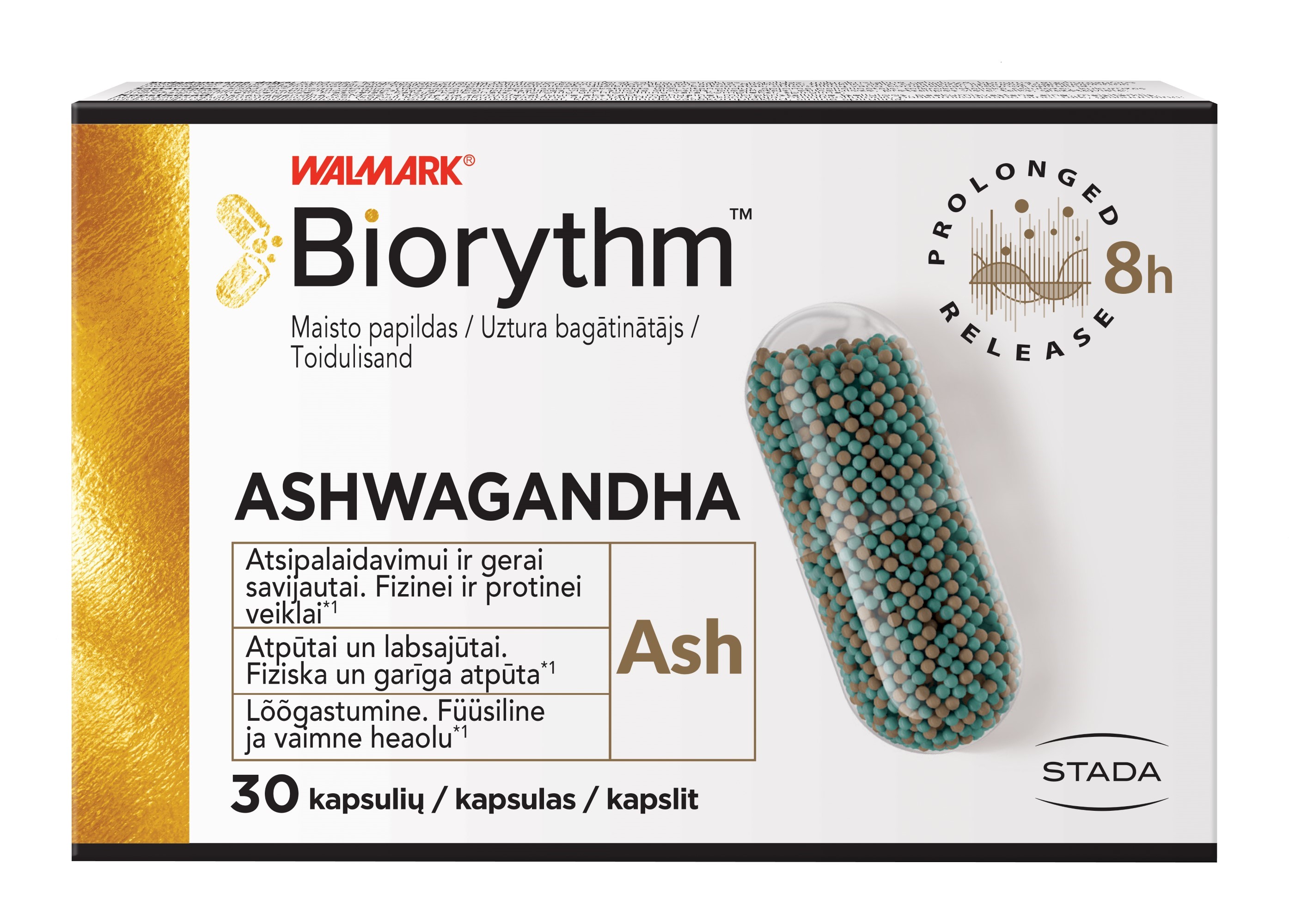 Tootetutvustus Biorythm ASHWAGANDHA 30 kapslit Toidulisand. Lõõgastumine. Füüsiline ja vaimne heaolu*1 Biorythm™ sarja tootmisel kasutatakse toidulisandite jaoks uuenduslikku ja ainulaadset tehnoloogiat - Sustained Release (SR) - tehnoloogia toimeainete pikendatud vabanemiseks. Erilised mikrograanulid vabastavad toimeaineid 8 tunni jooksul. *1ASHWAGANDHA juurtes leidub vitanoliide. Ashwagandha ekstrakt aitab toetada organismi vastupanuvõimet stressile, lõõgastumist, emotsionaalset tasakaalu ja h...