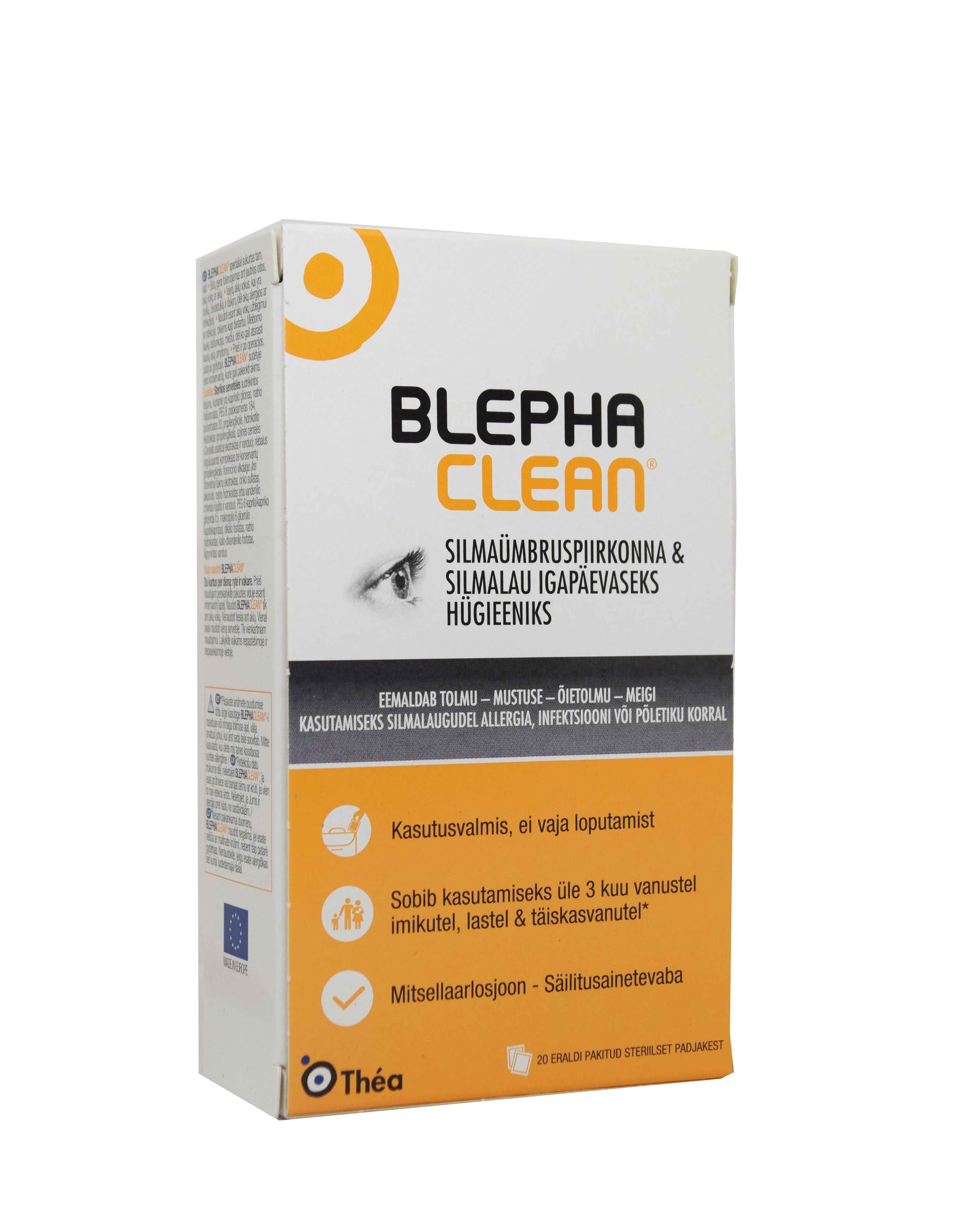 Säilitusainevabad, eelimmutatud ja ühekordseks kasutamiseks mõeldud steriilsed puhastuslapid silmalaugude, ripsmejuurte ja tundliku naha igapäevaseks hügieeniks. Eemaldab surnud naharakud, rähma, mustuse, veekindla meigi. Sisaldab mitsellaarvett ja taimeekstrakte, millel on võime endasse tõmmata mustust ja hoida rasuerituse tasakaalu. Silmaspetsialistid soovitavad silmalaugude hügieeni järgmiste seisundite puhul: - tundlikud, põletikulised ja allergilised silmad - odraiv...