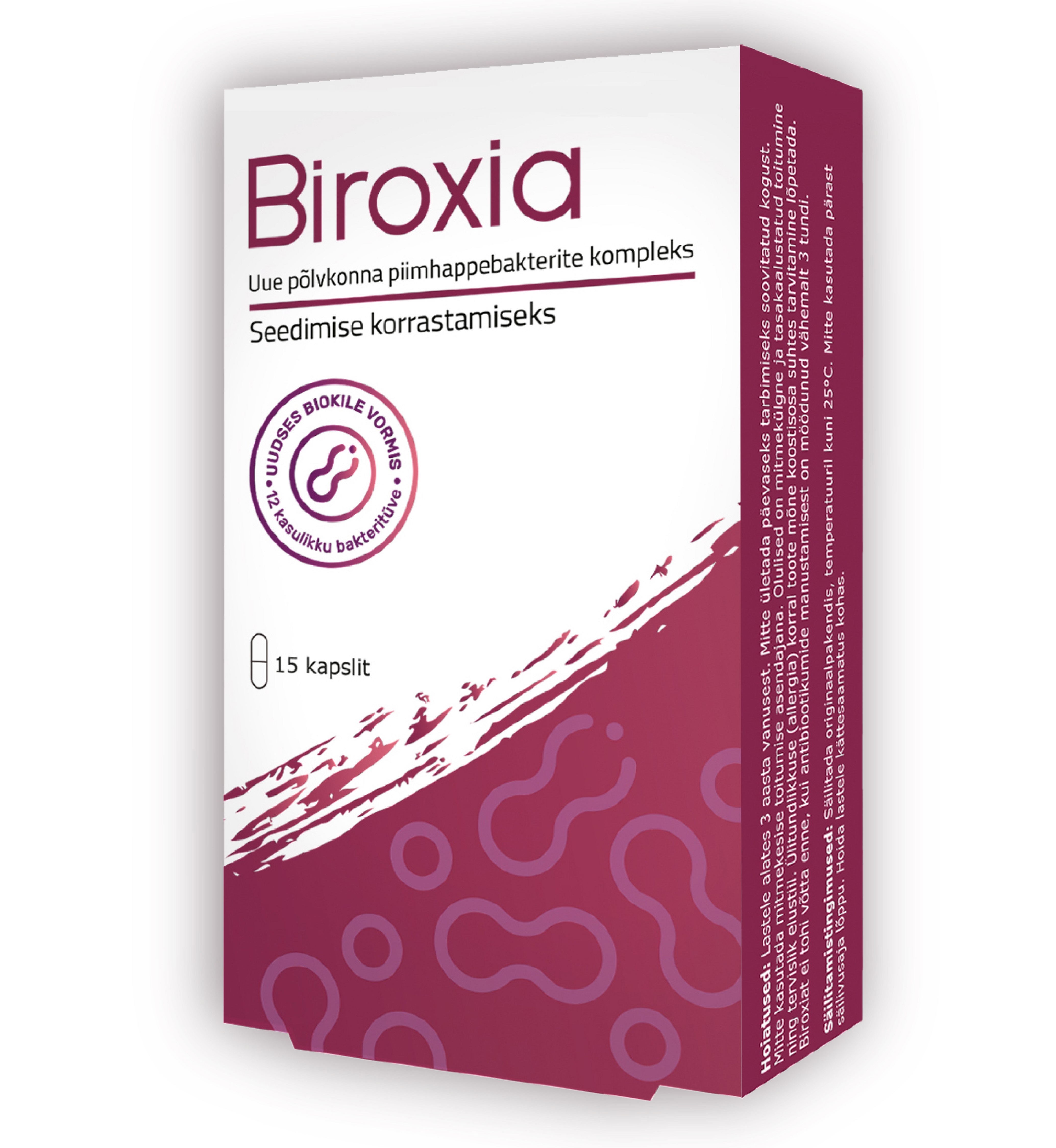Tootetutvustus Uue põlvkonna piimhappebakterite kompleks. Biroxia maohappekindlad kapslid sisaldavad kasulike elujõuliste bakterite segu uudses biokile vormis, mis seondub paremini ja kiiremini soole limaskestaga ning tagab bakterite kiirema kasvu ja tugevama kasuliku mõju. Biroxia kapsleid soovitatakse kasutada seedimise korrastamiseks antibiootikumide kuuri ajal ja pärast seda. Biroxia maohappekindel kapsel kaitseb selles olevaid häid baktereid happelise pH eest ning tänu sellele jõuab palju s...